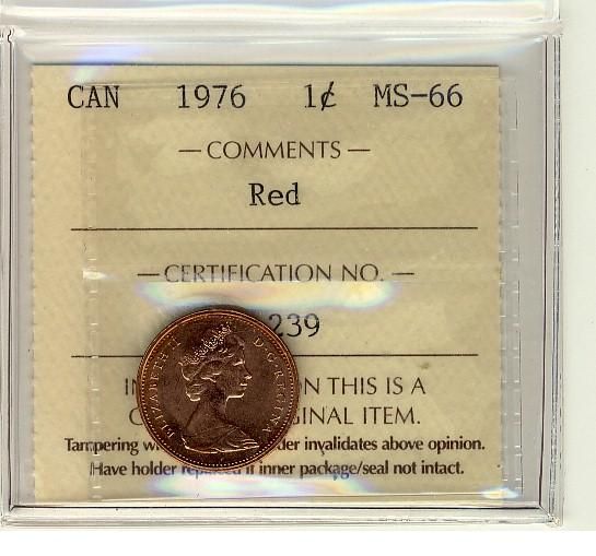 1976 1¢ ICCS MS66 Full Red, A superb GEM example.