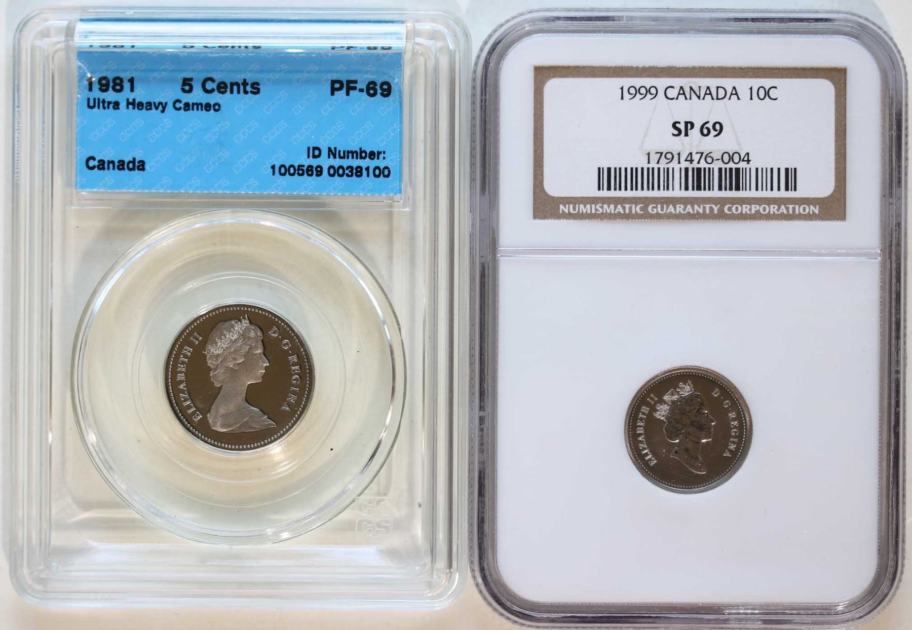The cataloguer has taken every reasonable measure to ensure that all of the lots in this sale are as described and genuine. All raw coins and banknotes have been graded by the cataloger or the auction house which represent our best professional opinion. To grade coins and banknotes, we use Canadian grading standards, 42 years of experience and good conscience. However, grading is a subjective description in the opinion of the cataloger or the auction house. Among experts there are often differences of opinion on the grading and the eye appeal of a coin. The strike and the state of preservation are often debated. The Canadian Numismatic Company acts as an agent between consignors and buyers. The Canadian Numismatic Company does not guarantee that any coin or banknote cataloged will meet the standards, or the grade, of any third party grading companies. No warranty, whether impressed or implied. Items are as is, no warranty given. We cannot accept responsibility and waive all liability resulting in financial losses, and or incidentals accruing from the sale of any items, nor can we guarantee that items graded by third party services will grade the same if submitted to a different grading service or re-submitted to the same company. Statements by The Canadian Numismatic Company regarding the condition, the eye appeal, the strike and the population of items are for guidance only. All lots offered are sold "AS IS". Title to all lots remains with the auction house until paid for in full by the purchaser. But they are held at the risk of the purchaser once the time of the sale.