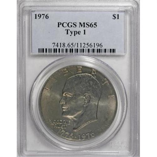 <B>1976 $1 Type One MS65 PCGS.</B></I> PCGS Population (417/21). NGC Census: (169/15). Mintage: 4,019,000. Numismedia Wsl. Price for NGC/PCGS coin in MS65: $150. (#7418)<BR><BR><B>Coin Engraver:</B> Frank Gasparro<BR><BR><b>Shipping:</b> Coins & Currency (<a target="_blank" href="http://www.heritageauctions.com/common/shipping.php">view shipping information</a>)