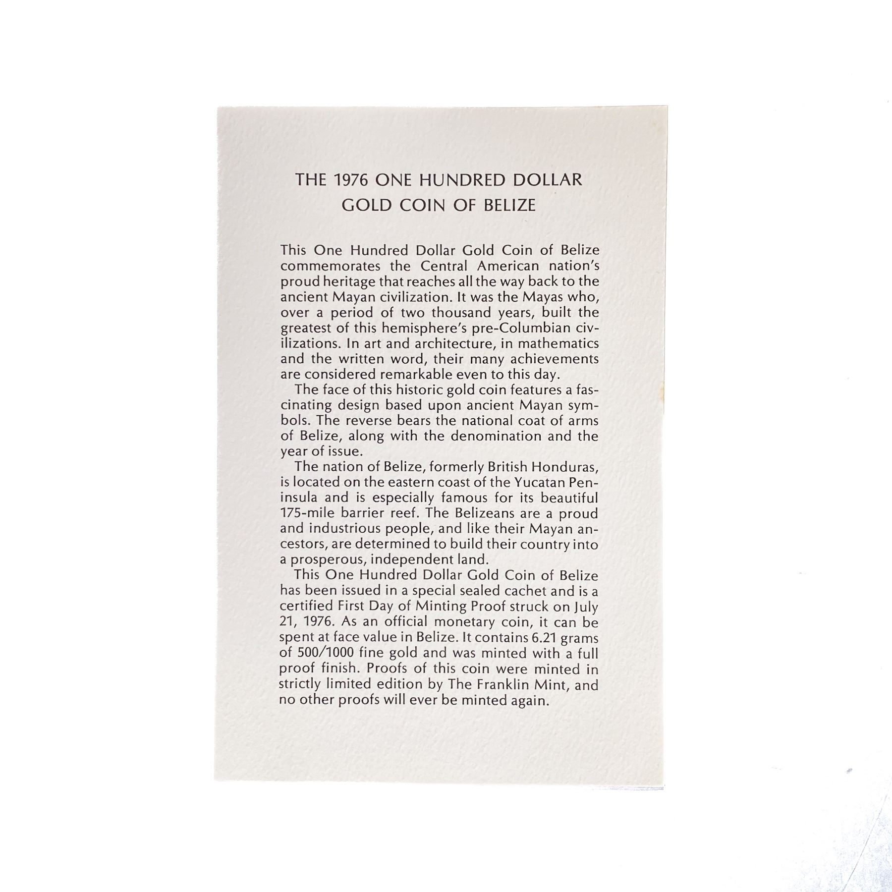 1976 $100 Gold Coin Belize (.0998 AGW)