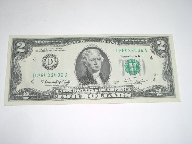 1976 $2 BILL *EXTREMELY RARE UNC HIGH GRADE* Serial # D28433406A!! ***Coin, Currency & All Items Listed in this auction - Grades, Conditions and Values are not Safe Deposit Coins LLC Responsibilty. Grades, Condition and Values are determined by Consigner(s) & Buyers ONLY***