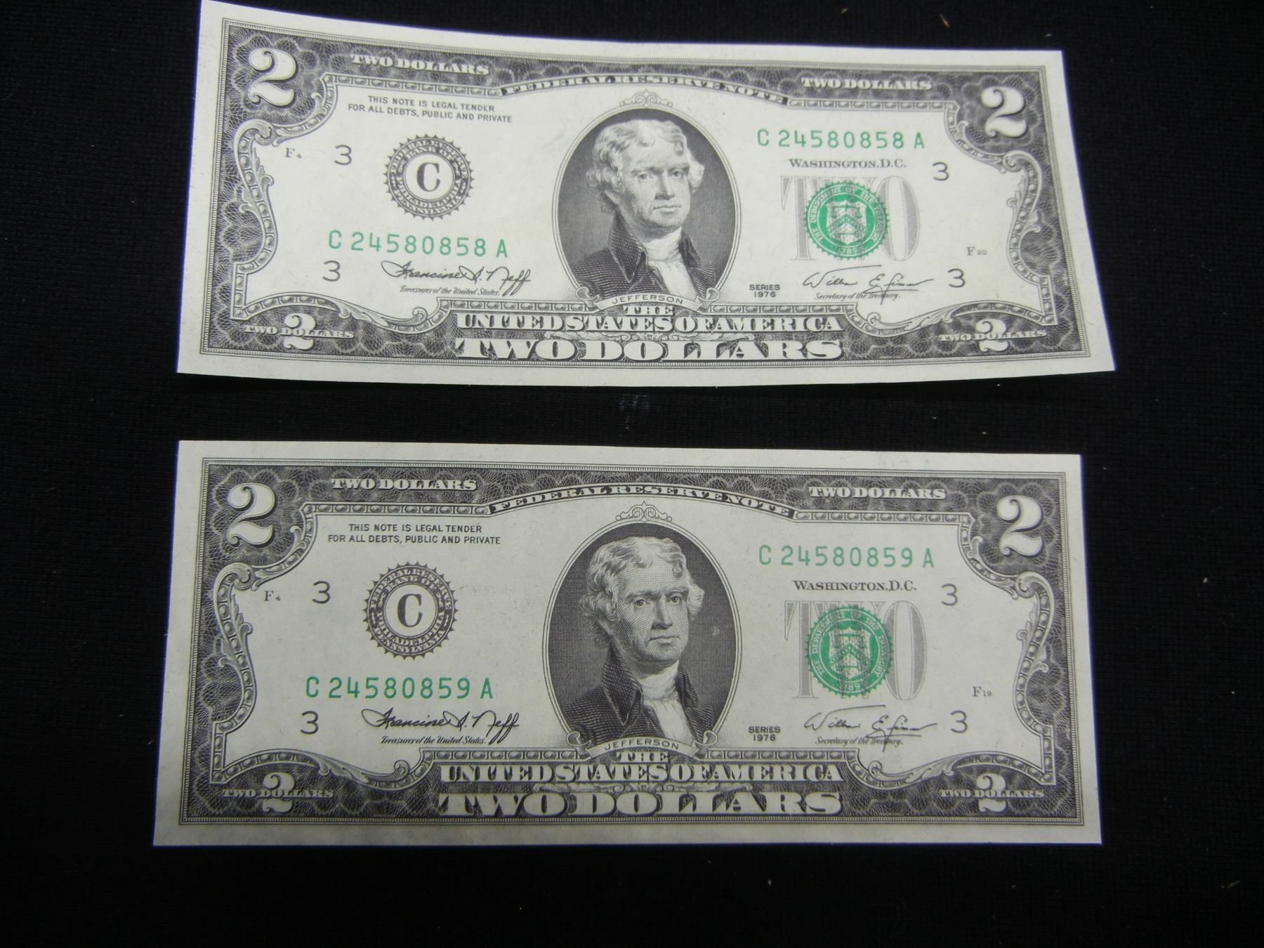 1976 $2 Bank Note - 2 Consecutive Numbered - Crisp Uncirculated