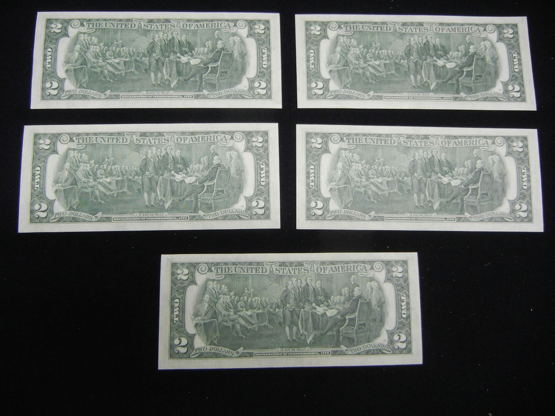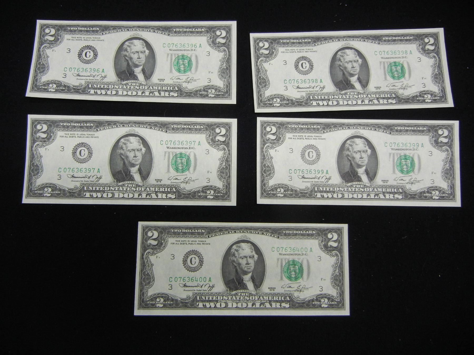 1976 $2 Bank Note - 5 Consecutive Numbered - Crisp Uncirculated