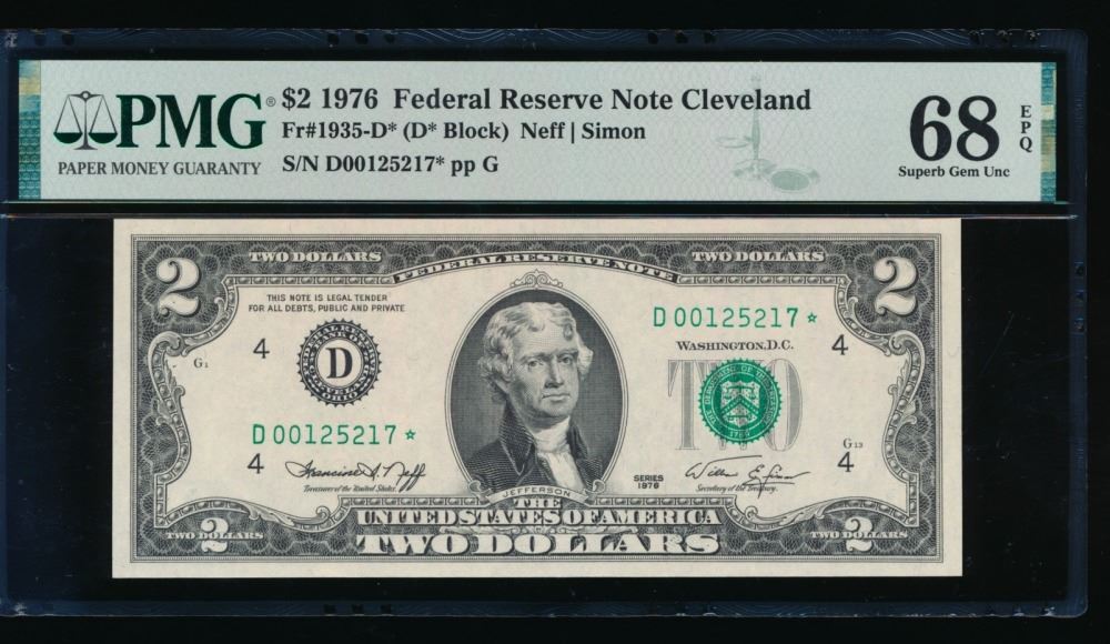 One 1976 $2 Cleveland Federal Reserve STAR Note PMG 68EPQ.