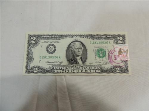 1976 2 DOLLAR BILL POSTAGE STAMPED FIRST DAY ISSUE. AS SHOWN. VIEW PICTURE FOR DETAIL.