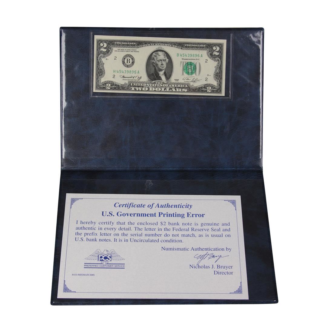 One 1976 $2 Federal Reserve Mismatch Prefix ERROR Note.