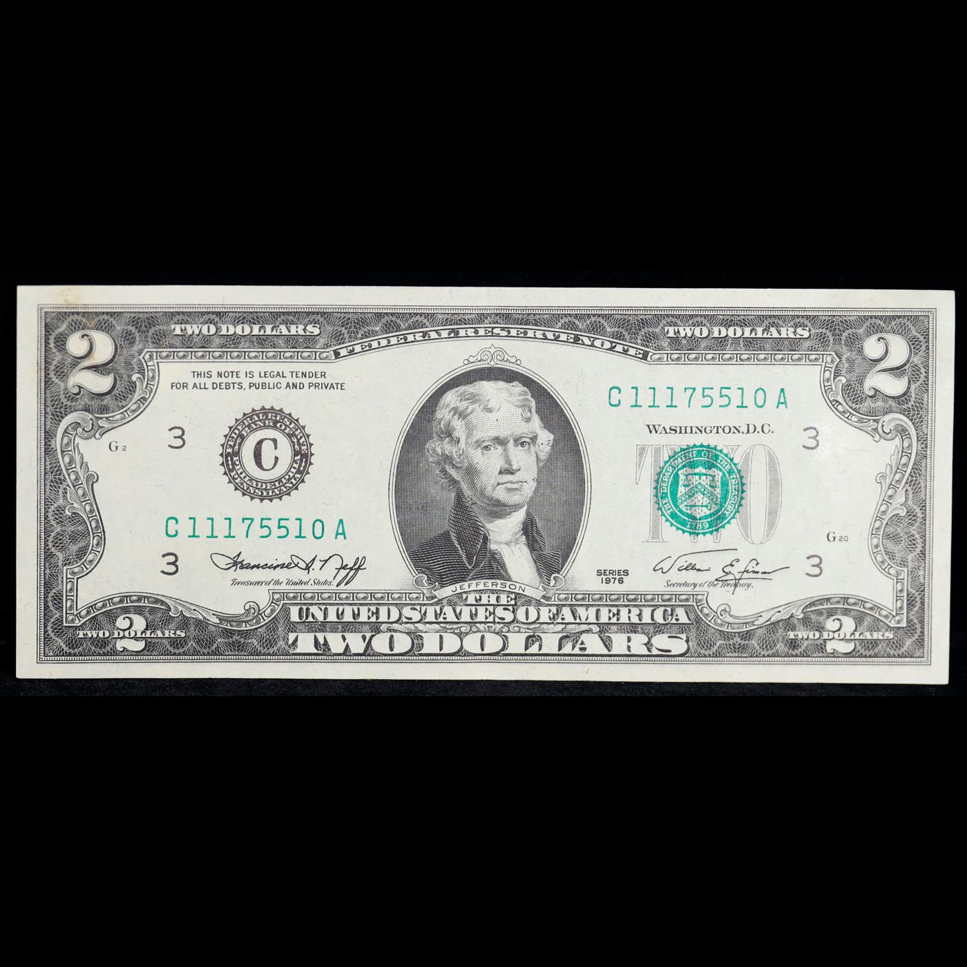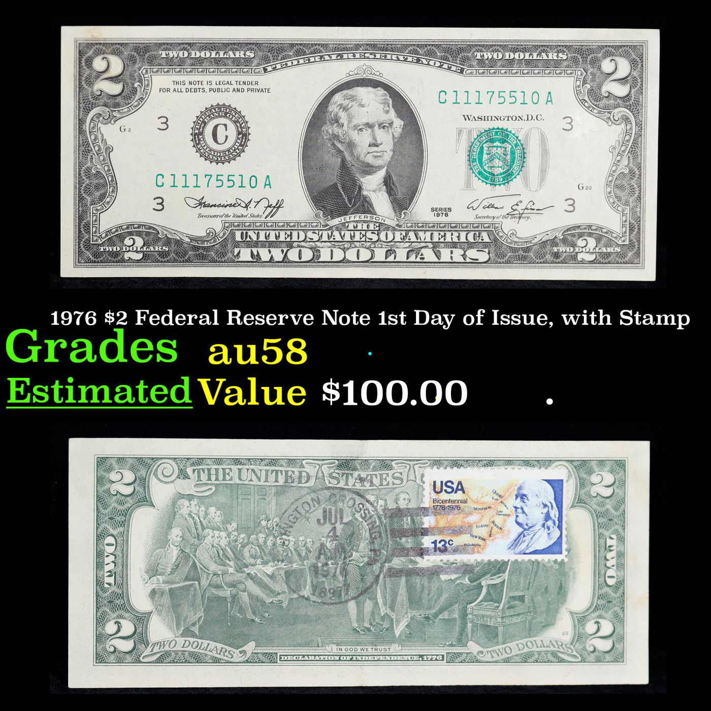 1976 $2 Federal Reserve Note 1st Day of Issue, with Stamp Grades Choice AU/BU Slider