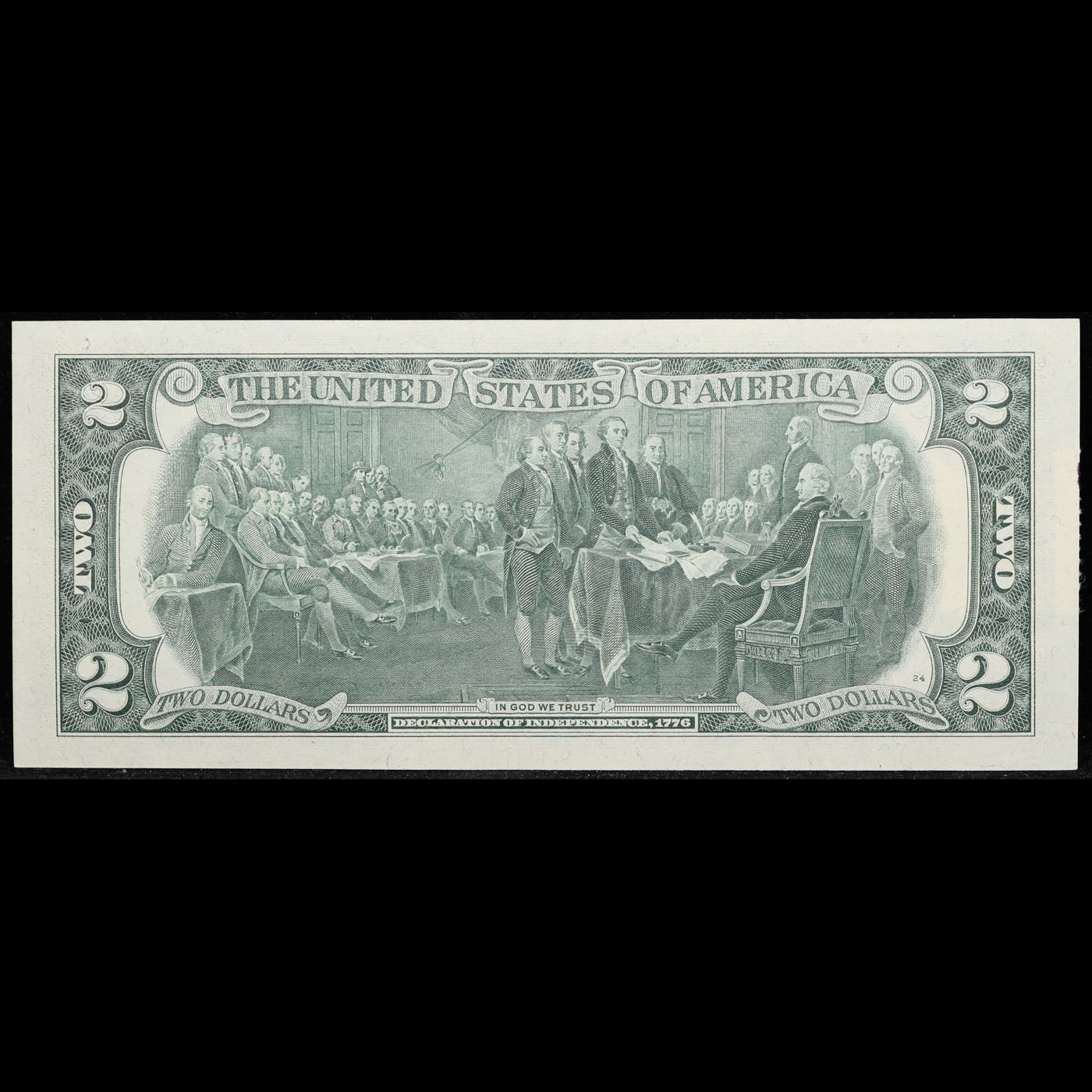 1976 $2 Federal Reserve Note 1st Day of Issue, with Stamp Grades Gem CU. On April 13, 1976, to celebrate the bicentennial of American independence, new $2 Federal Reserve Notes were issued with backs featuring the well-known painting Signing of the Declaration of Independence. These Notes all have a 13c Stamp or 2 stamps totaling 13c hand canceled on April 13, 1976 for the first day of issue of the new $2 notes. These official first-day-of-issue Bicentennial notes will be historic additions to your collection (designs and locations of the 13¢ stamps will vary).