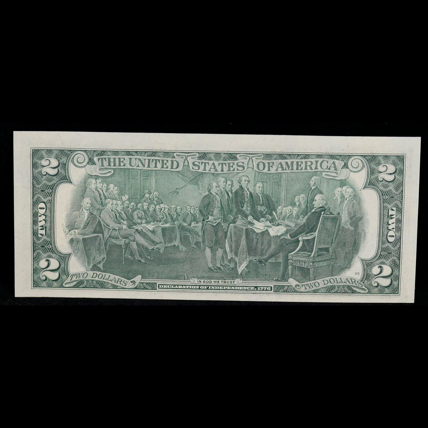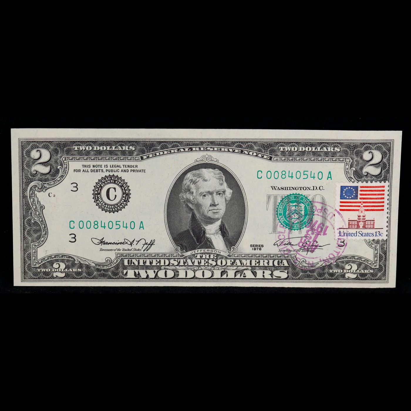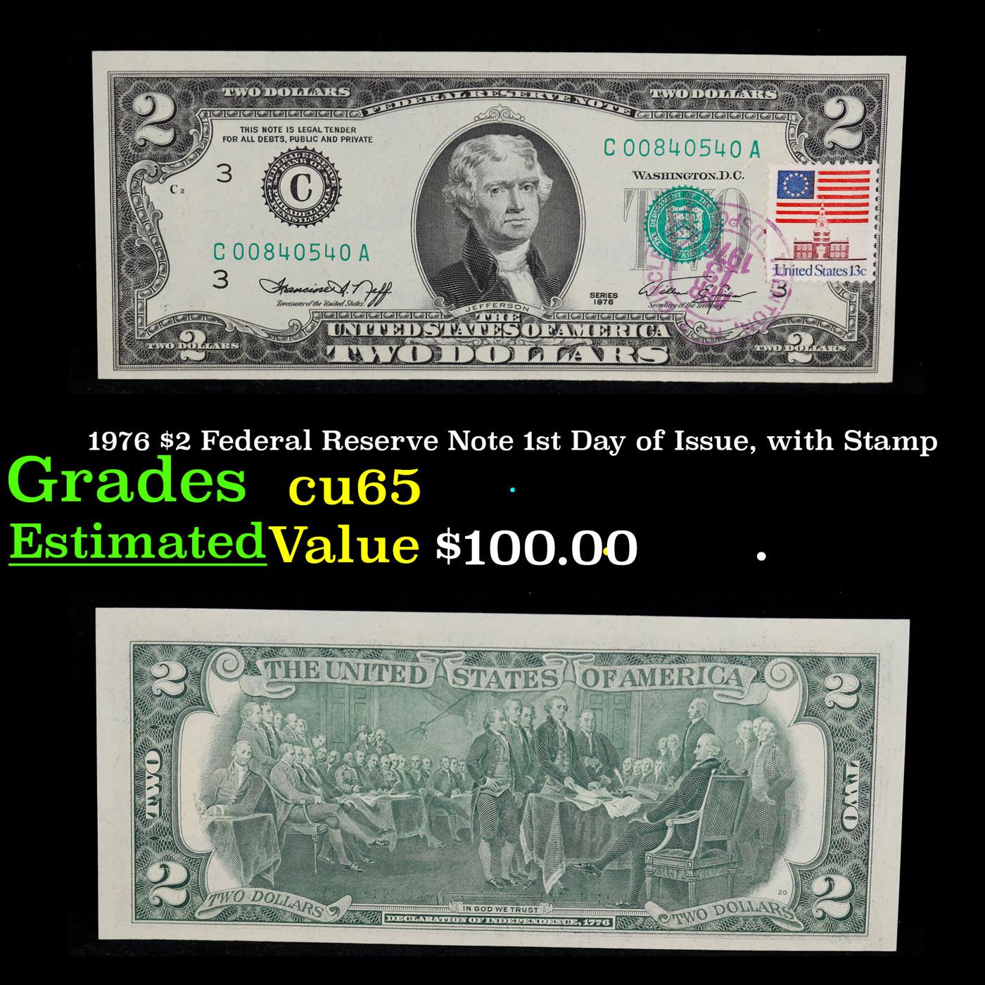 1976 $2 Federal Reserve Note 1st Day of Issue, with Stamp Grades Gem CU