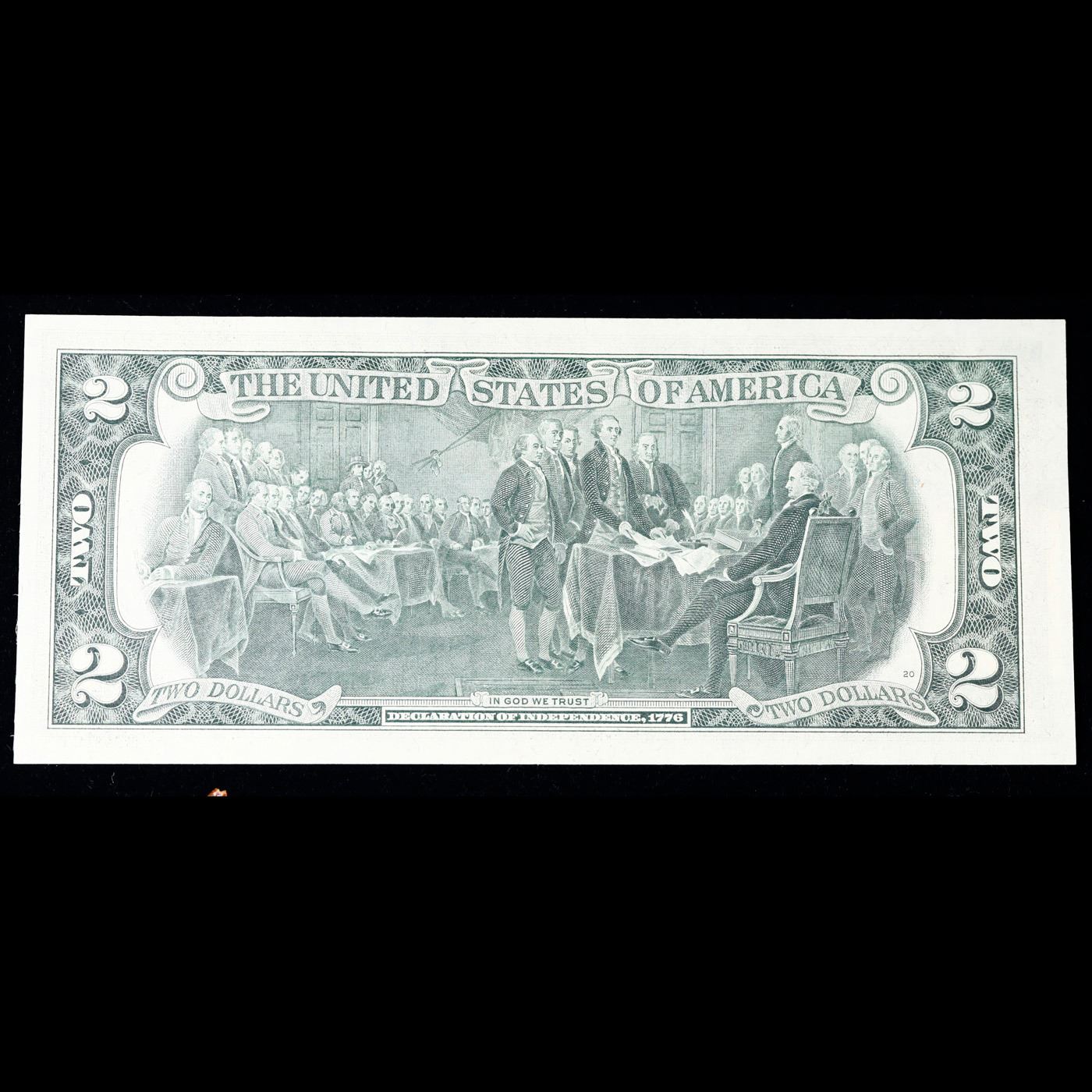 1976 $2 Federal Reserve Note 1st Day of Issue, with Stamp Grades Gem CU