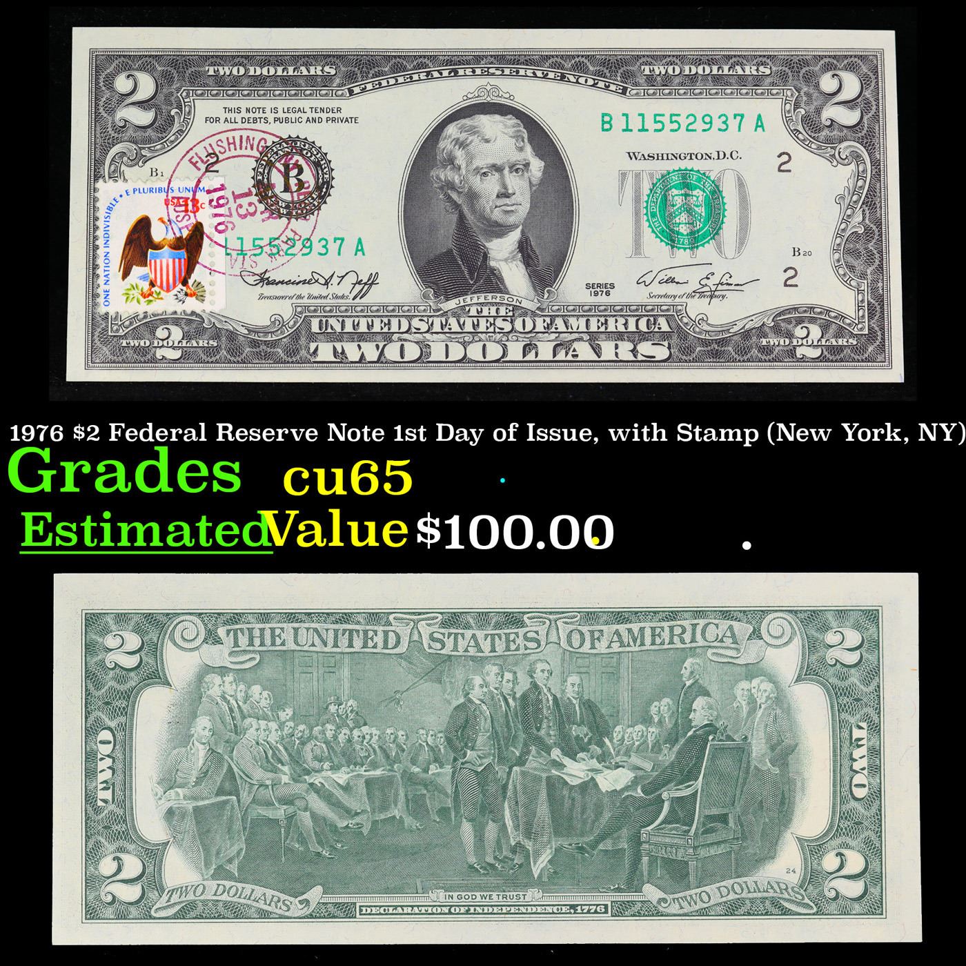 1976 $2 Federal Reserve Note 1st Day of Issue, with Stamp (New York, NY) Grades Gem CU