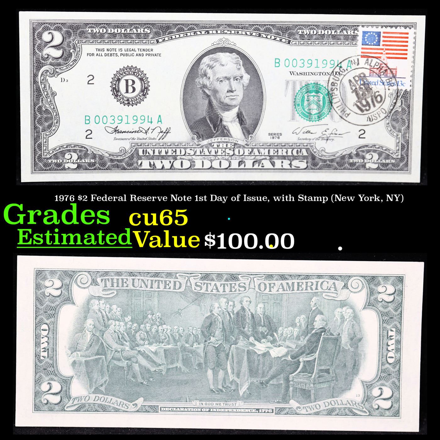 1976 $2 Federal Reserve Note 1st Day of Issue, with Stamp (New York, NY) Grades Gem CU