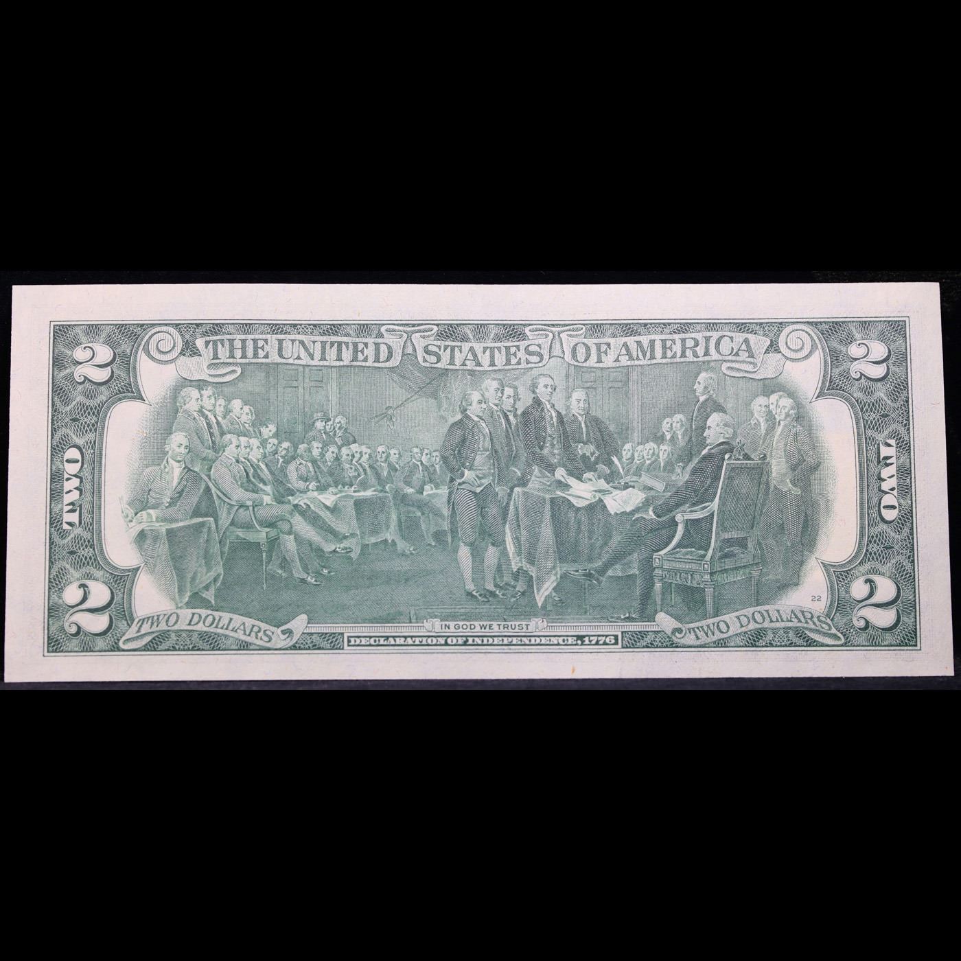 1976 $2 Federal Reserve Note 1st Day of Issue, with Stamp (Philadelphia, PA) Grades Gem CU. On April 13, 1976, to celebrate the bicentennial of American independence, new $2 Federal Reserve Notes were issued with backs featuring the well-known painting Signing of the Declaration of Independence. These Notes all have a 13c Stamp or 2 stamps totaling 13c hand canceled on April 13, 1976 for the first day of issue of the new $2 notes. These official first-day-of-issue Bicentennial notes will be historic additions to your collection (designs and locations of the 13¢ stamps will vary).