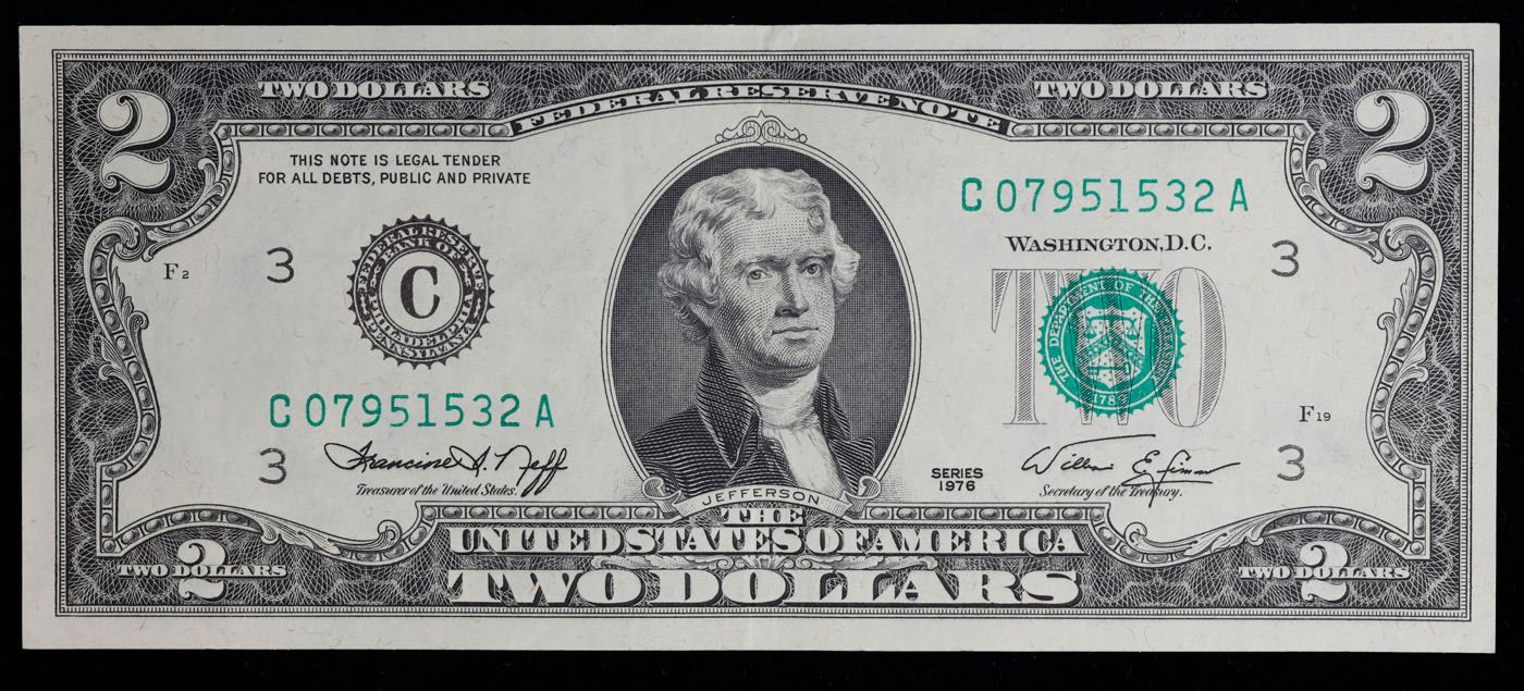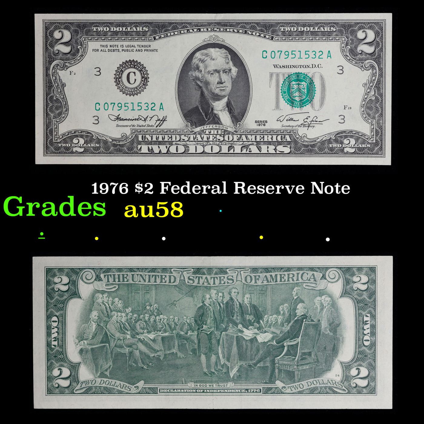 1976 $2 Federal Reserve Note Grades Choice AU/BU Slider.