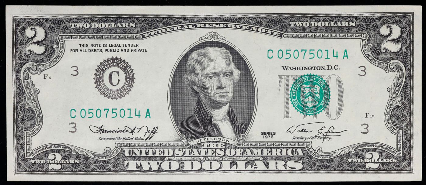 1976 $2 Federal Reserve Note Grades Choice AU/BU Slider.
