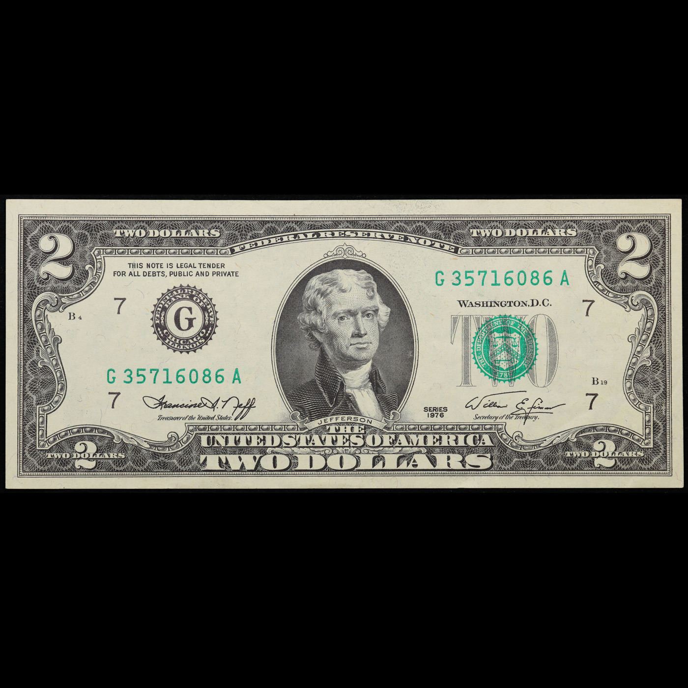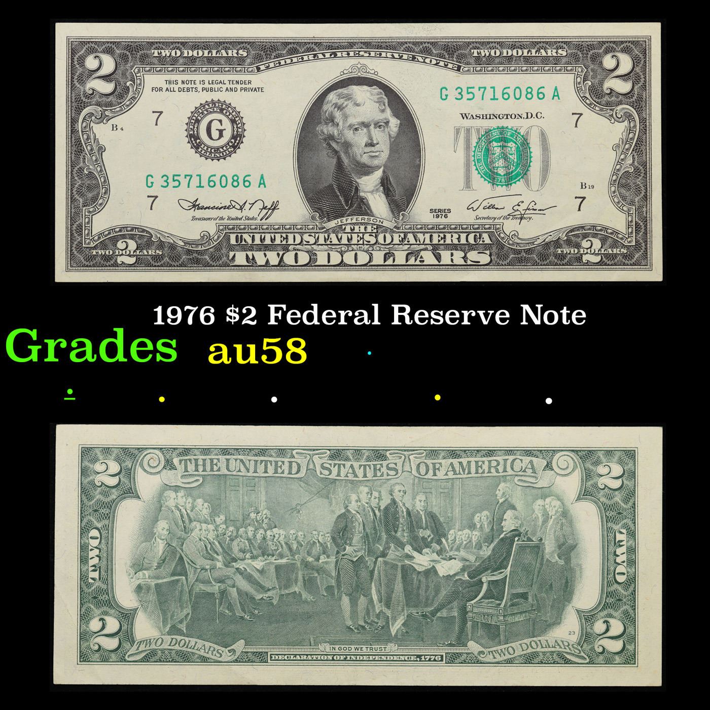 1976 $2 Federal Reserve Note Grades Choice AU/BU Slider.