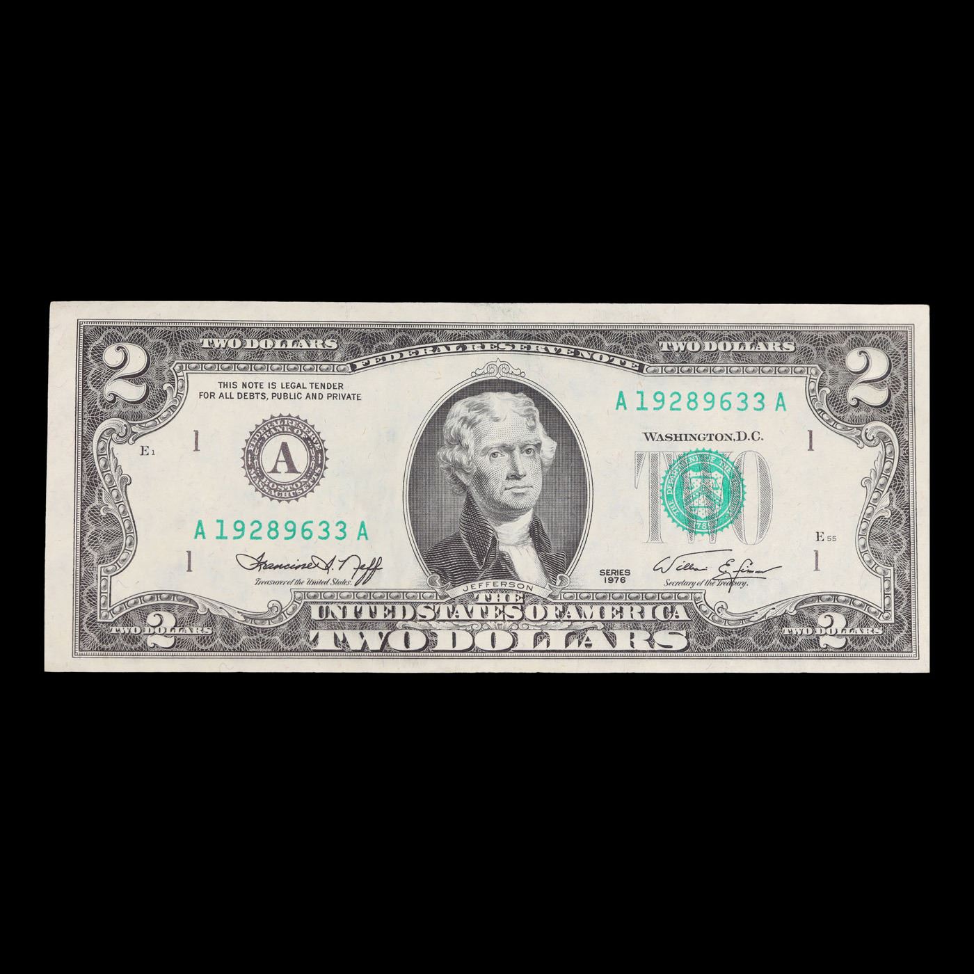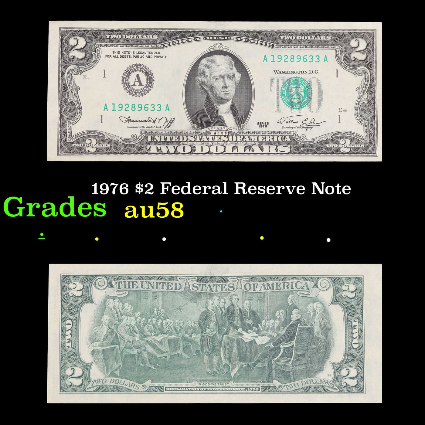 1976 $2 Federal Reserve Note Grades Choice AU/BU Slider.