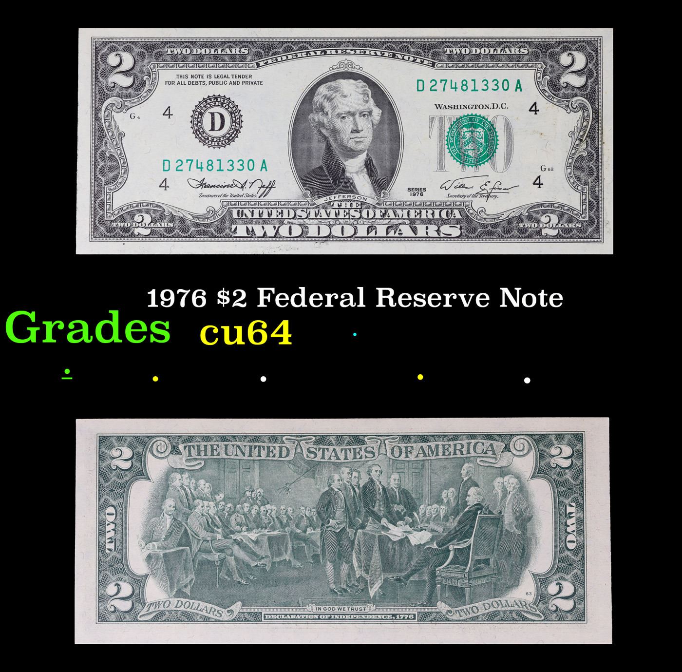 1976 $2 Federal Reserve Note Grades Choice CU.