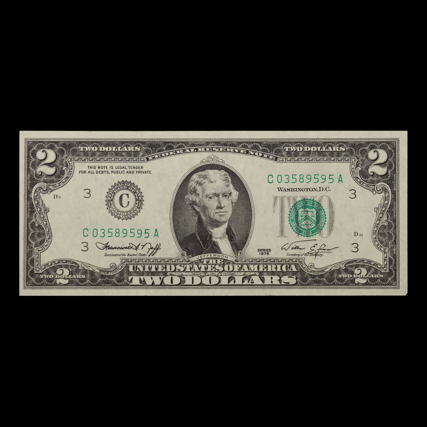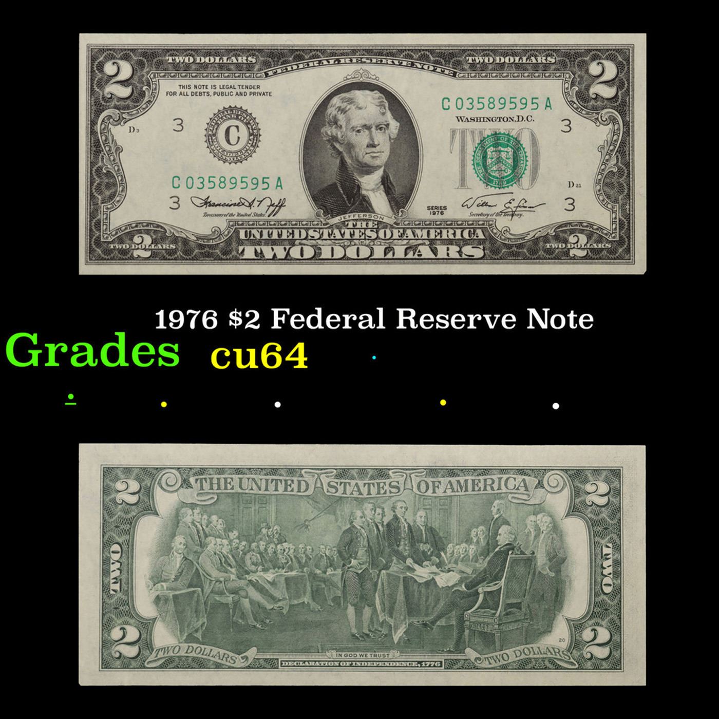 1976 $2 Federal Reserve Note Grades Choice CU.