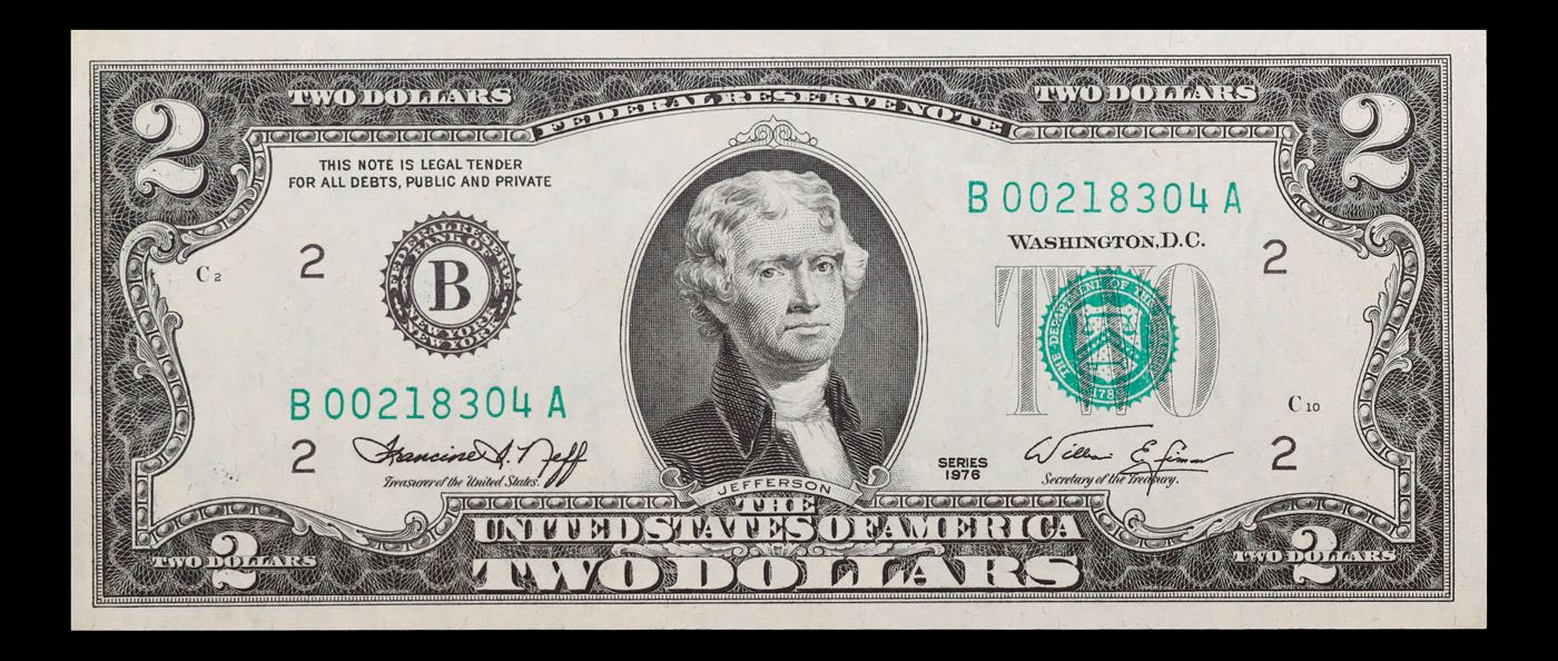 1976 $2 Federal Reserve Note Grades Gem CU.