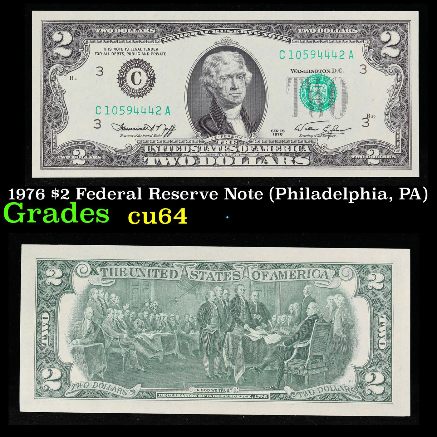 1976 $2 Federal Reserve Note (Philadelphia, PA) Grades Choice CU.