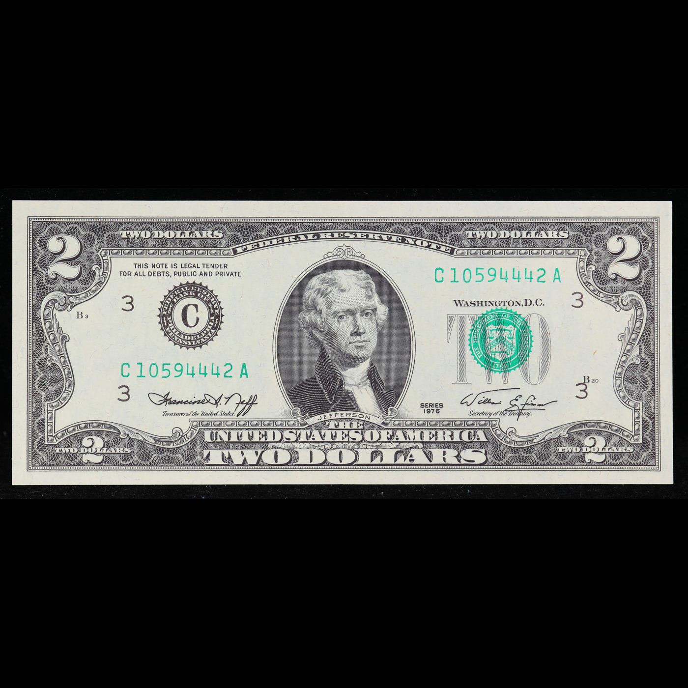 1976 $2 Federal Reserve Note (Philadelphia, PA) Grades Choice CU