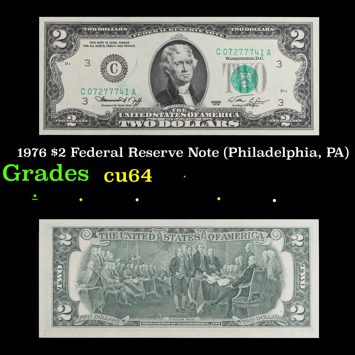 1976 $2 Federal Reserve Note (Philadelphia, PA) Grades Choice CU.