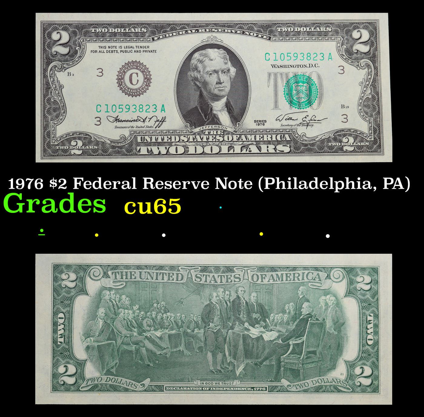 1976 $2 Federal Reserve Note (Philadelphia, PA) Grades Gem CU.