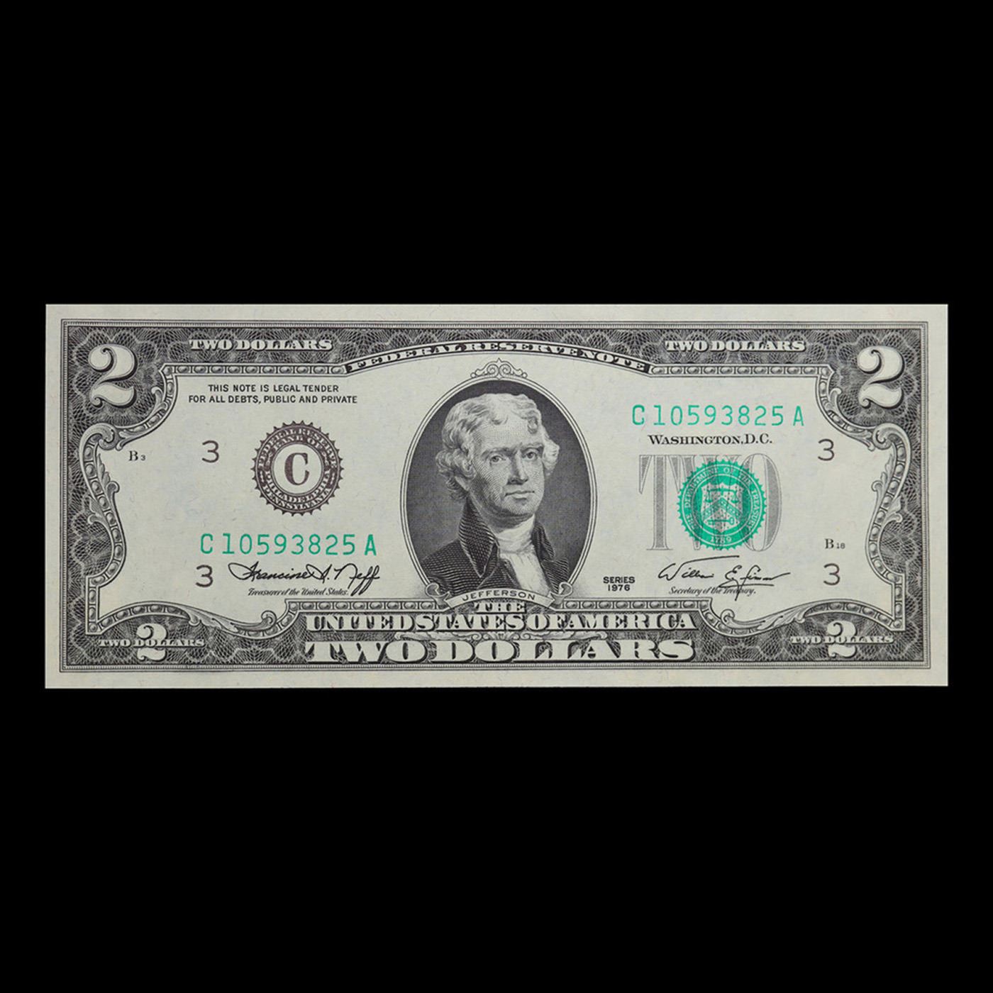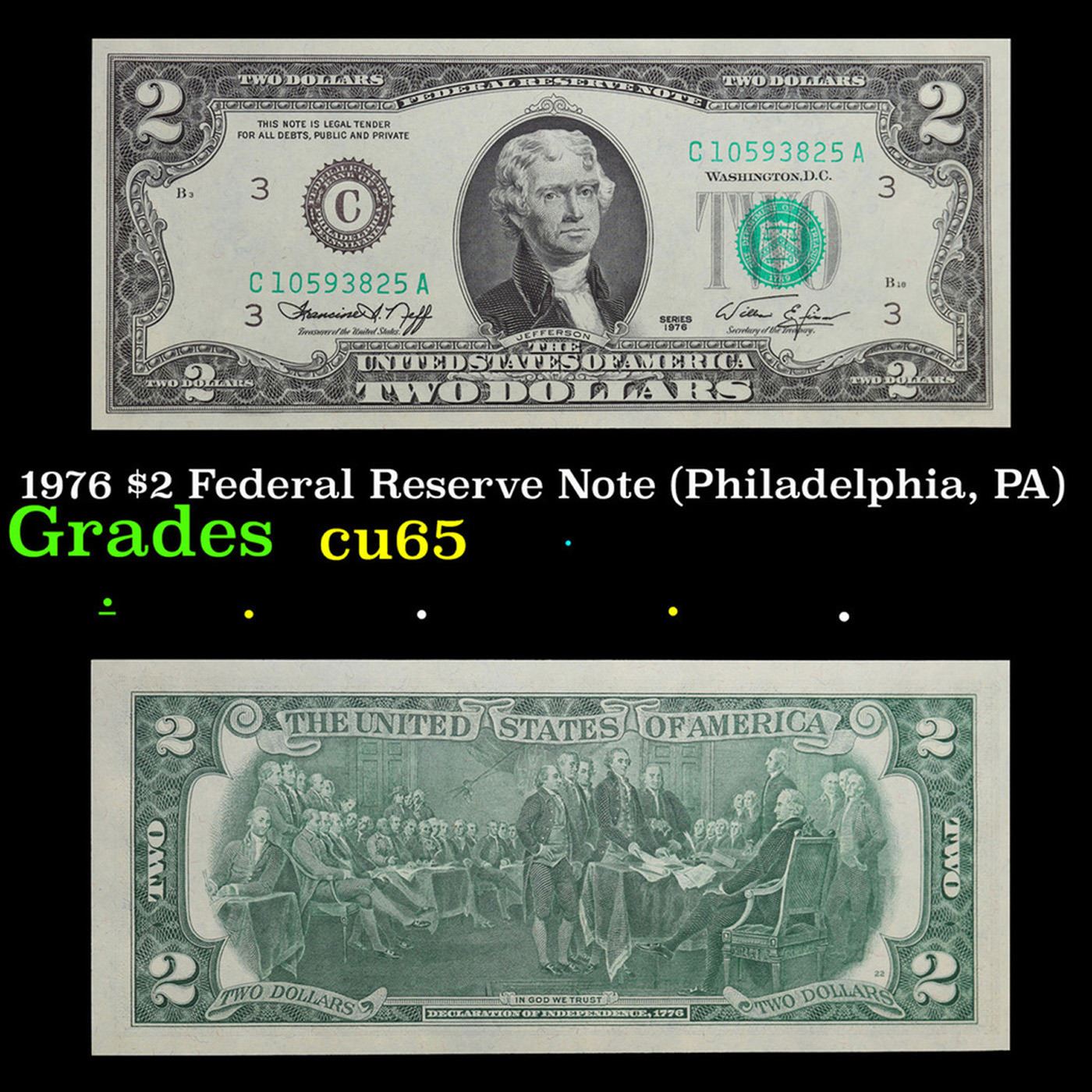 1976 $2 Federal Reserve Note (Philadelphia, PA) Grades Gem CU.