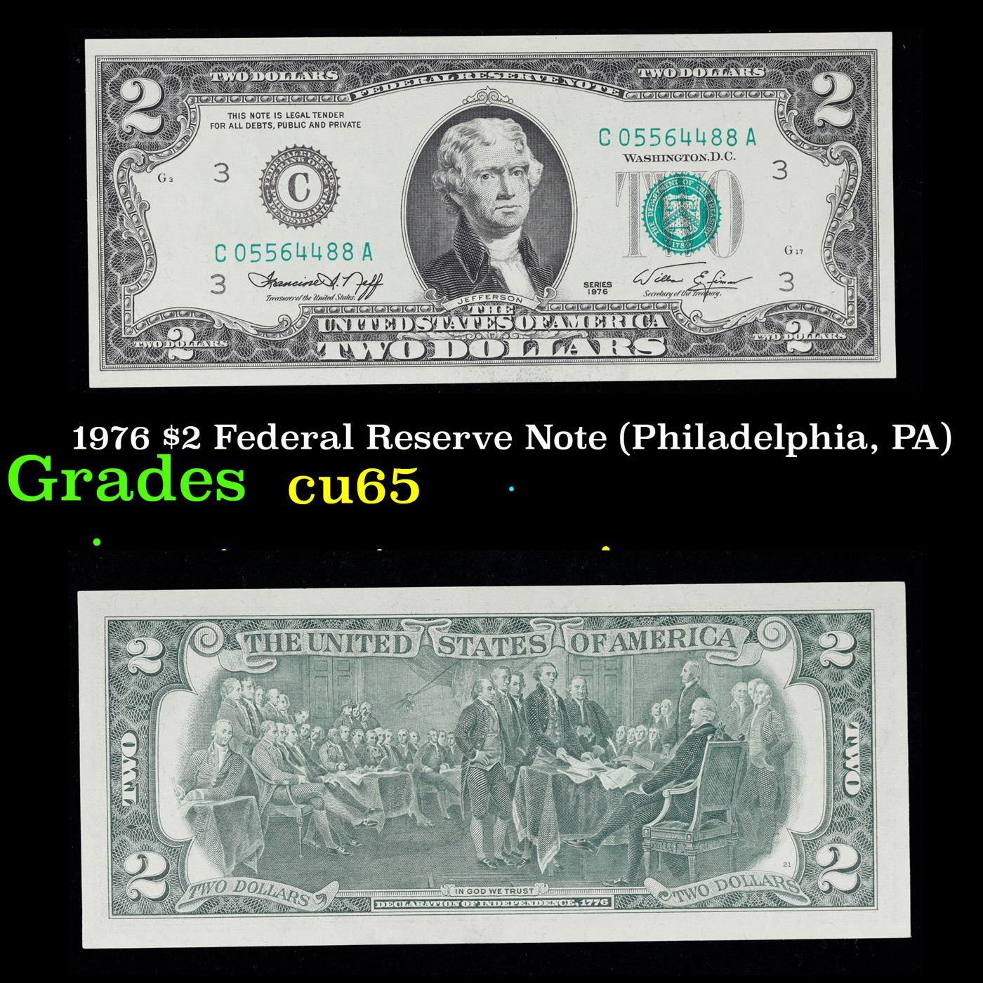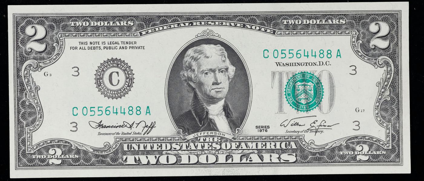 1976 $2 Federal Reserve Note (Philadelphia, PA) Grades Gem CU.