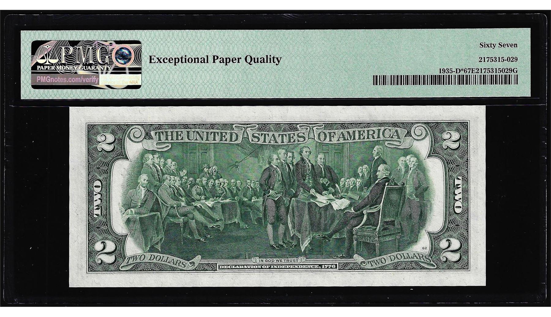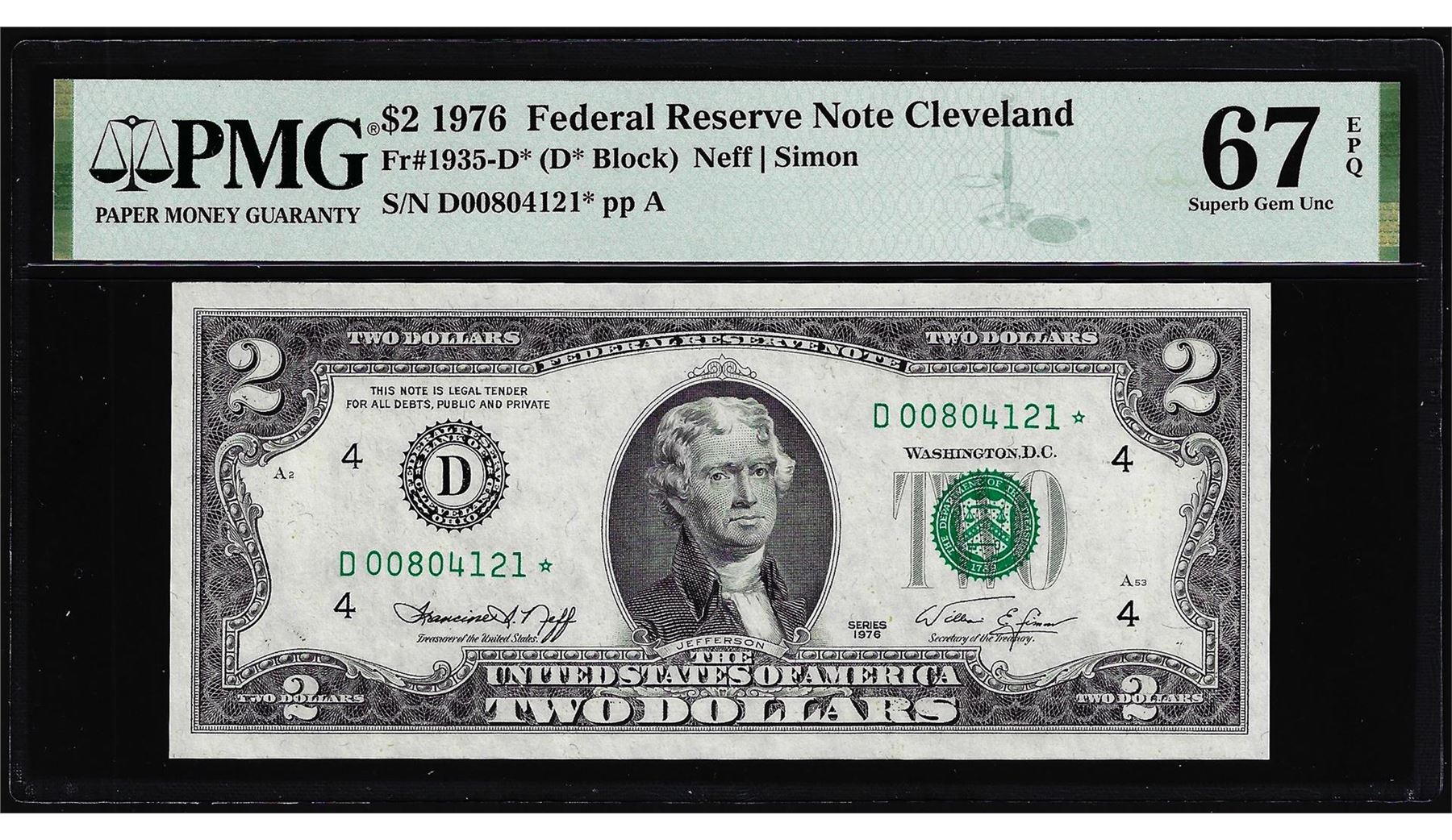 One 1976 $2 Federal Reserve STAR Note Fr.1935-D* Cleveland PMG Superb Gem Unc. 67EPQ. PMG Certified.