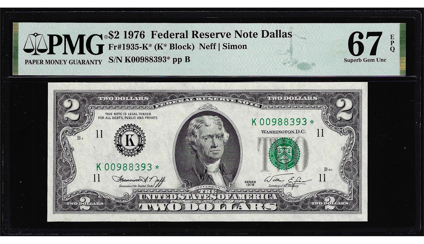 1976 $2 Federal Reserve STAR Note Fr.1935-K* Dallas PMG Superb Gem Uncirculated 67EPQ