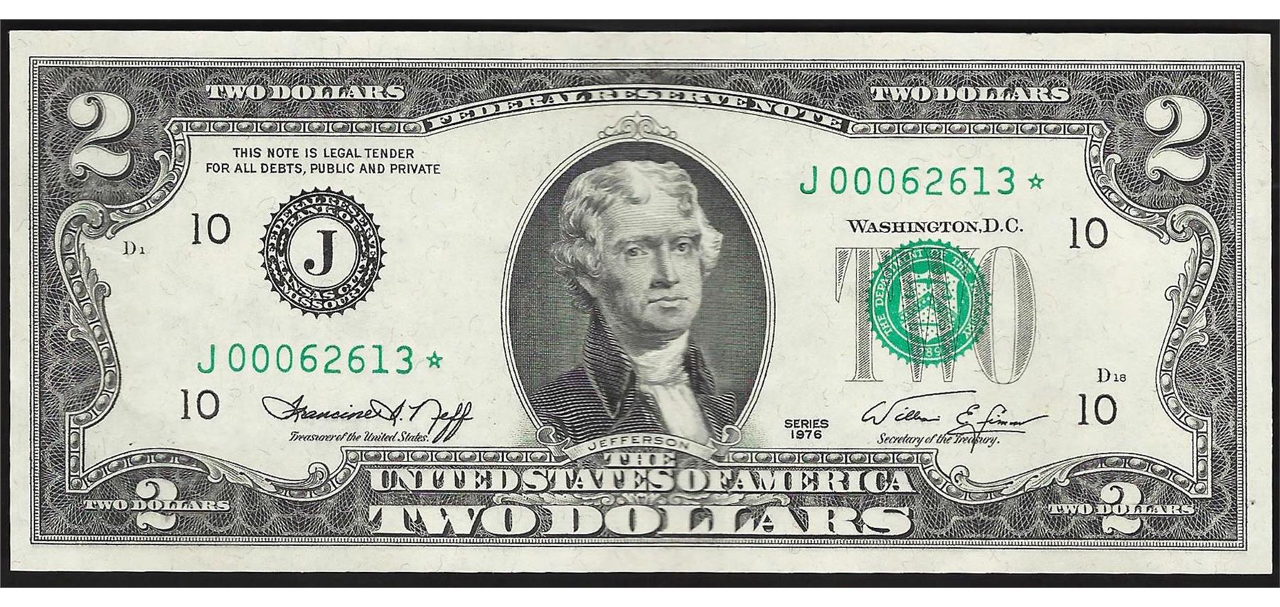 One 1976 $2 Federal Reserve STAR Note.