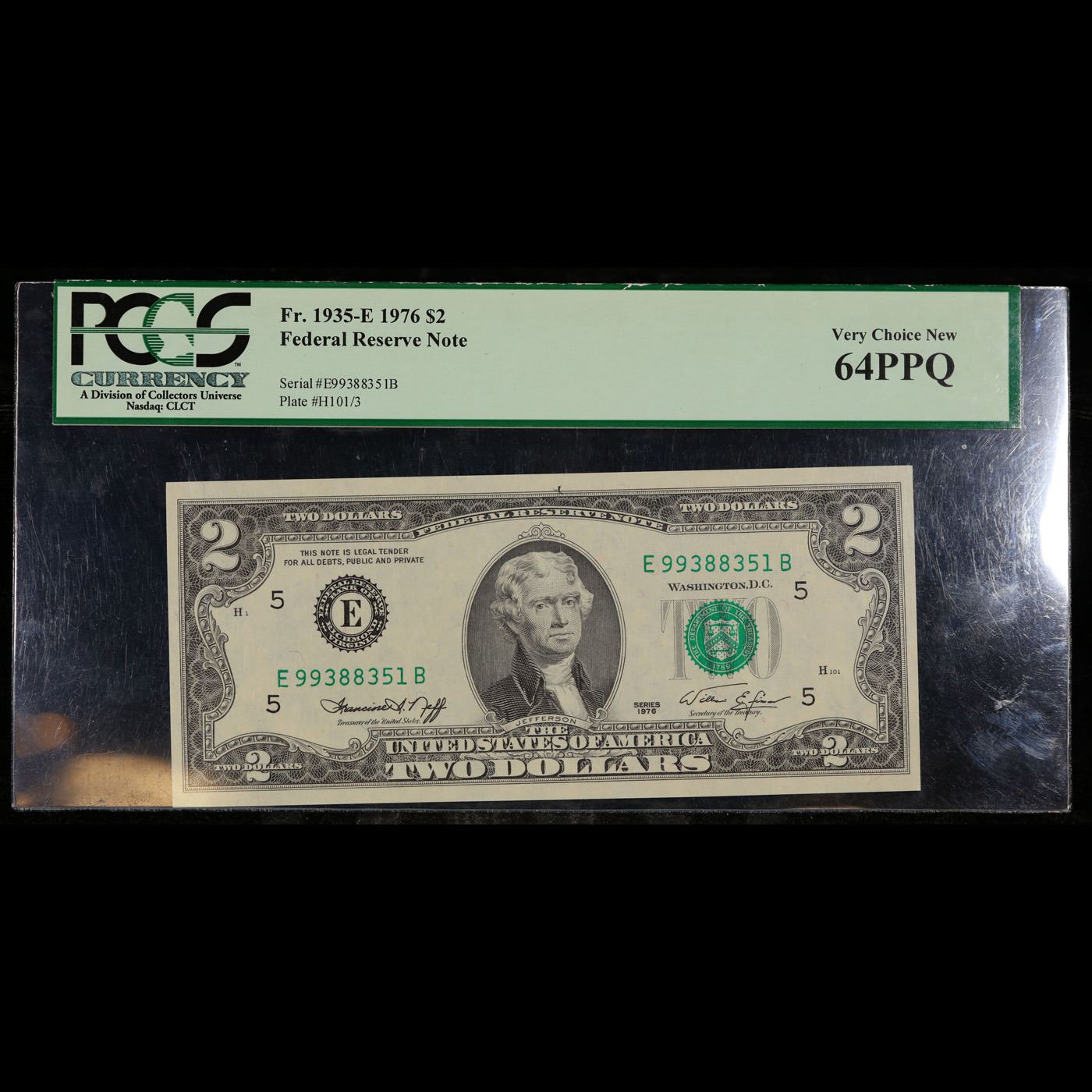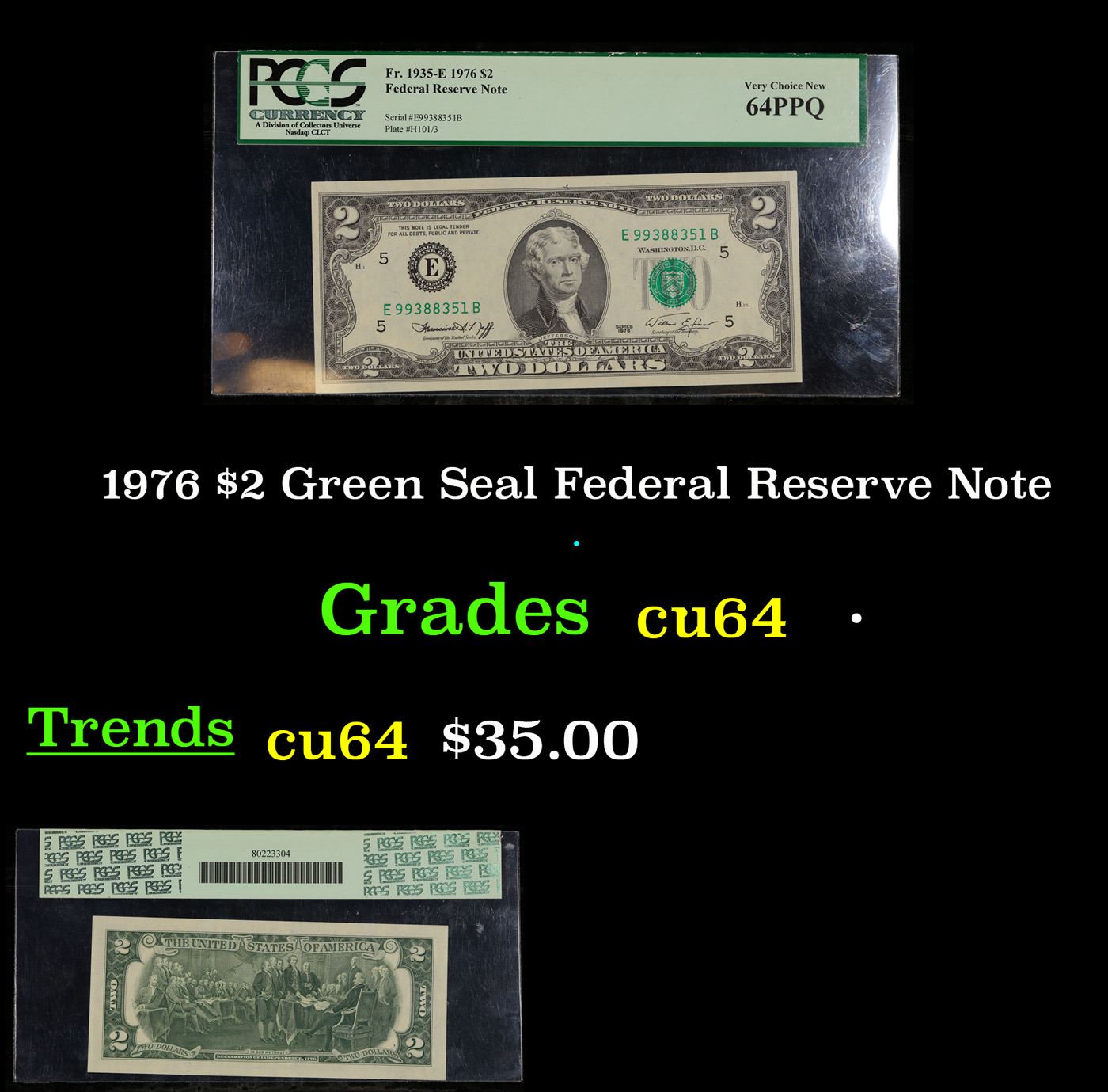 1976 $2 Green Seal Federal Reserve Note By PMG.