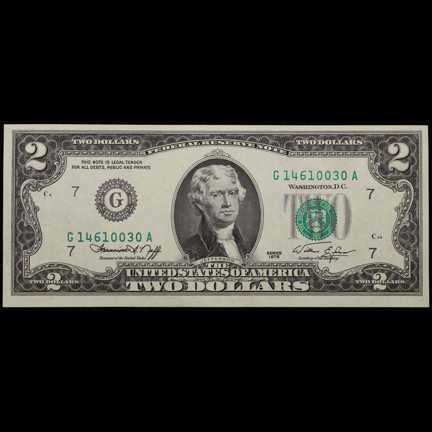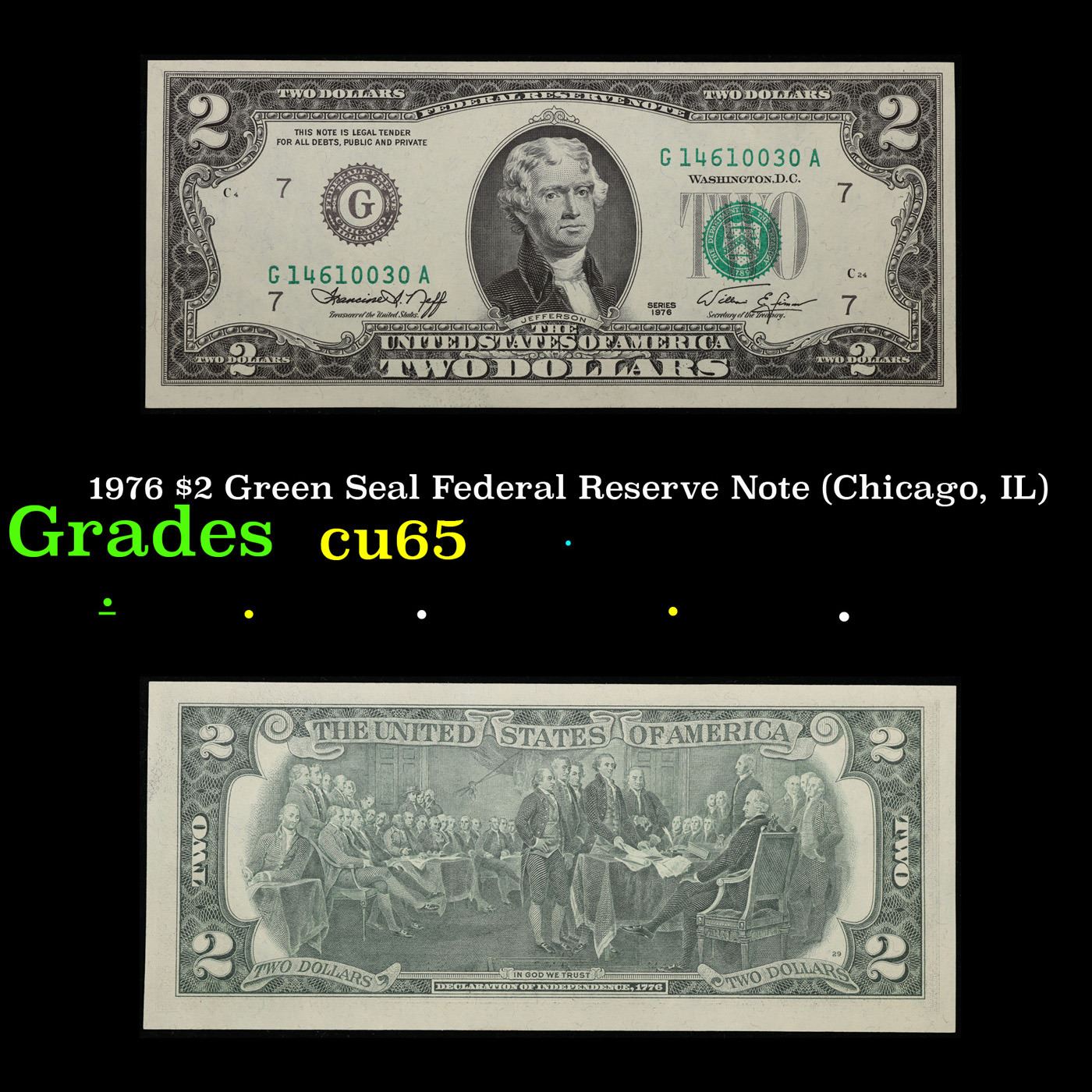 1976 $2 Green Seal Federal Reserve Note (Chicago, IL) Grades Gem CU.