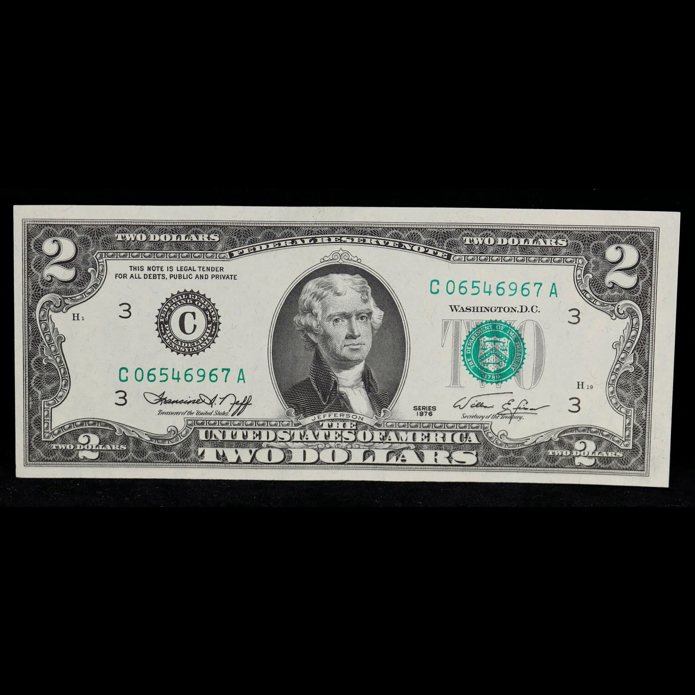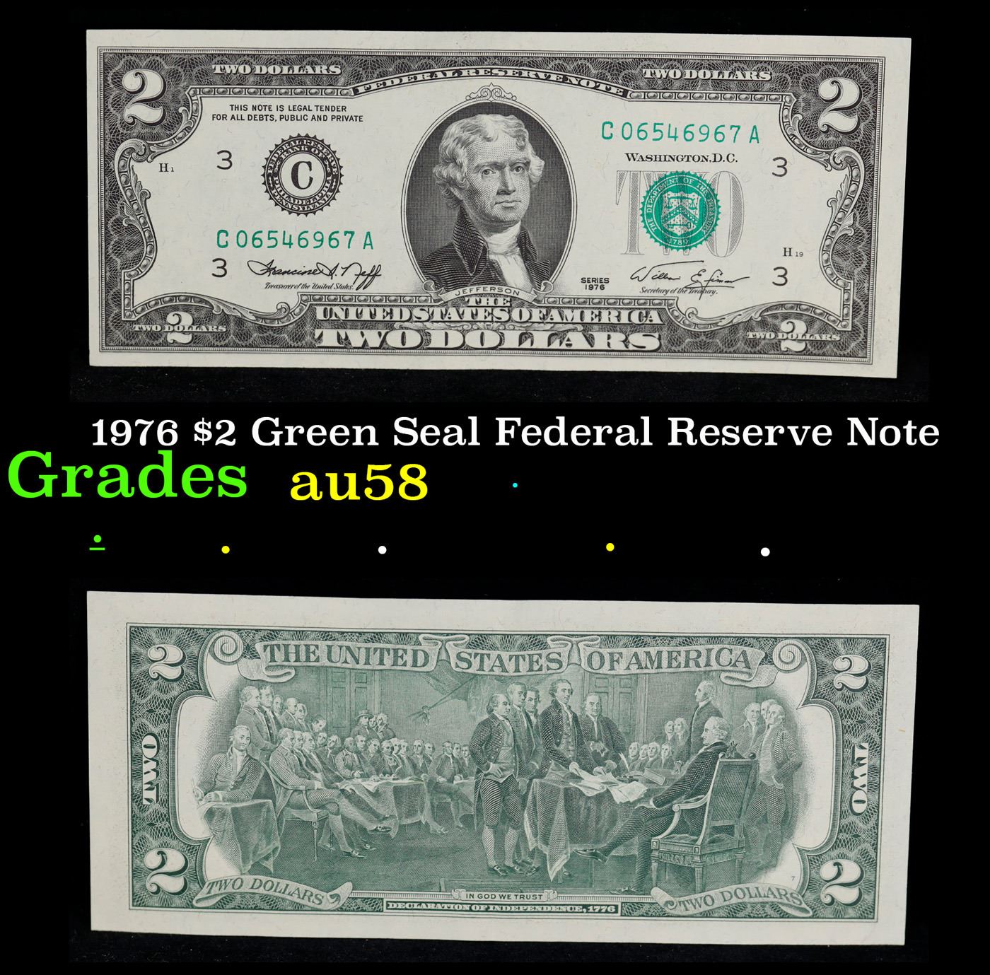 1976 $2 Green Seal Federal Reserve Note Grades Choice AU/BU Slider.
