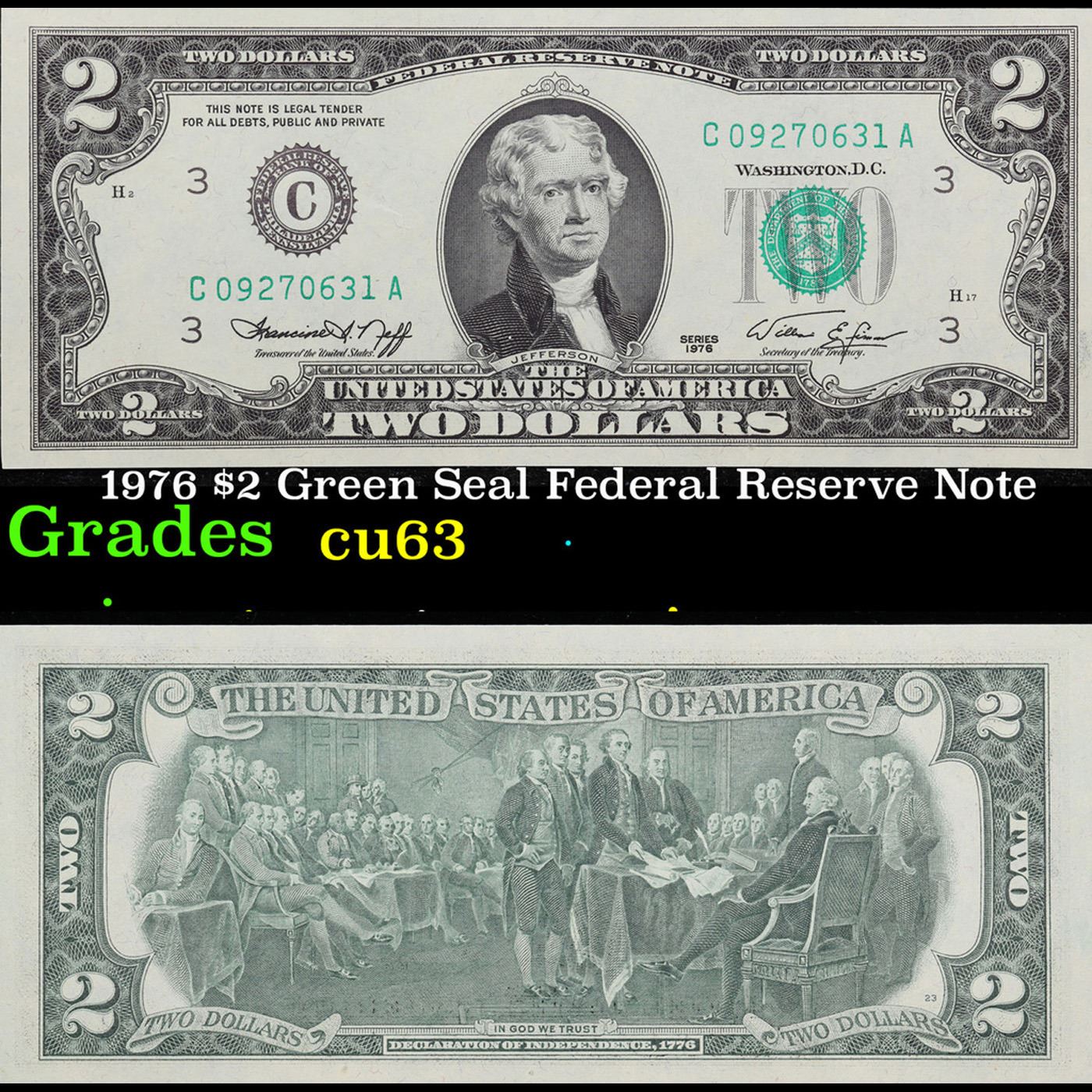 1976 $2 Green Seal Federal Reserve Note Grades Select CU.