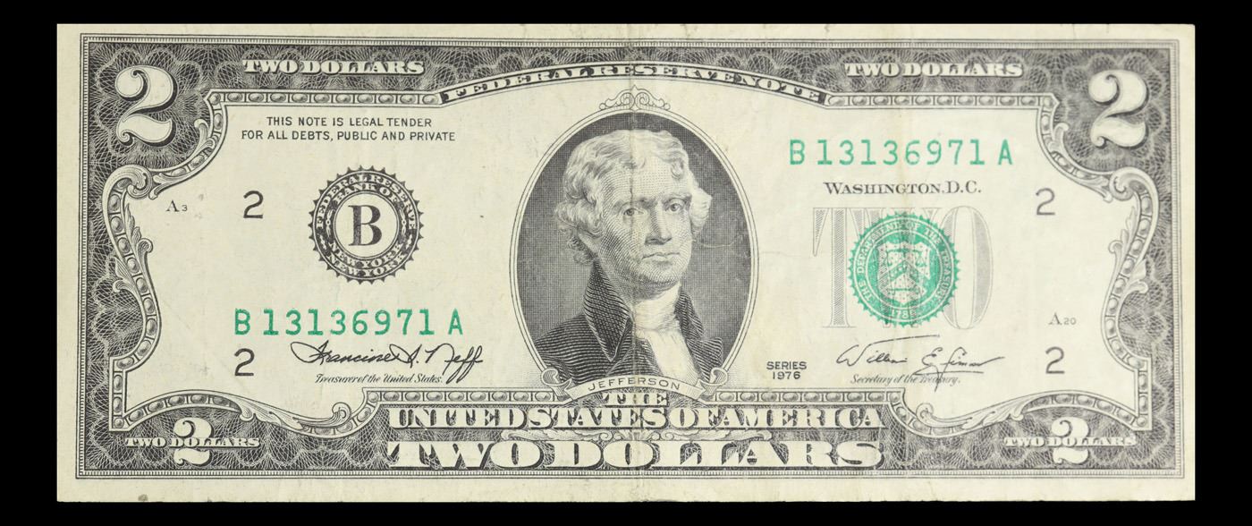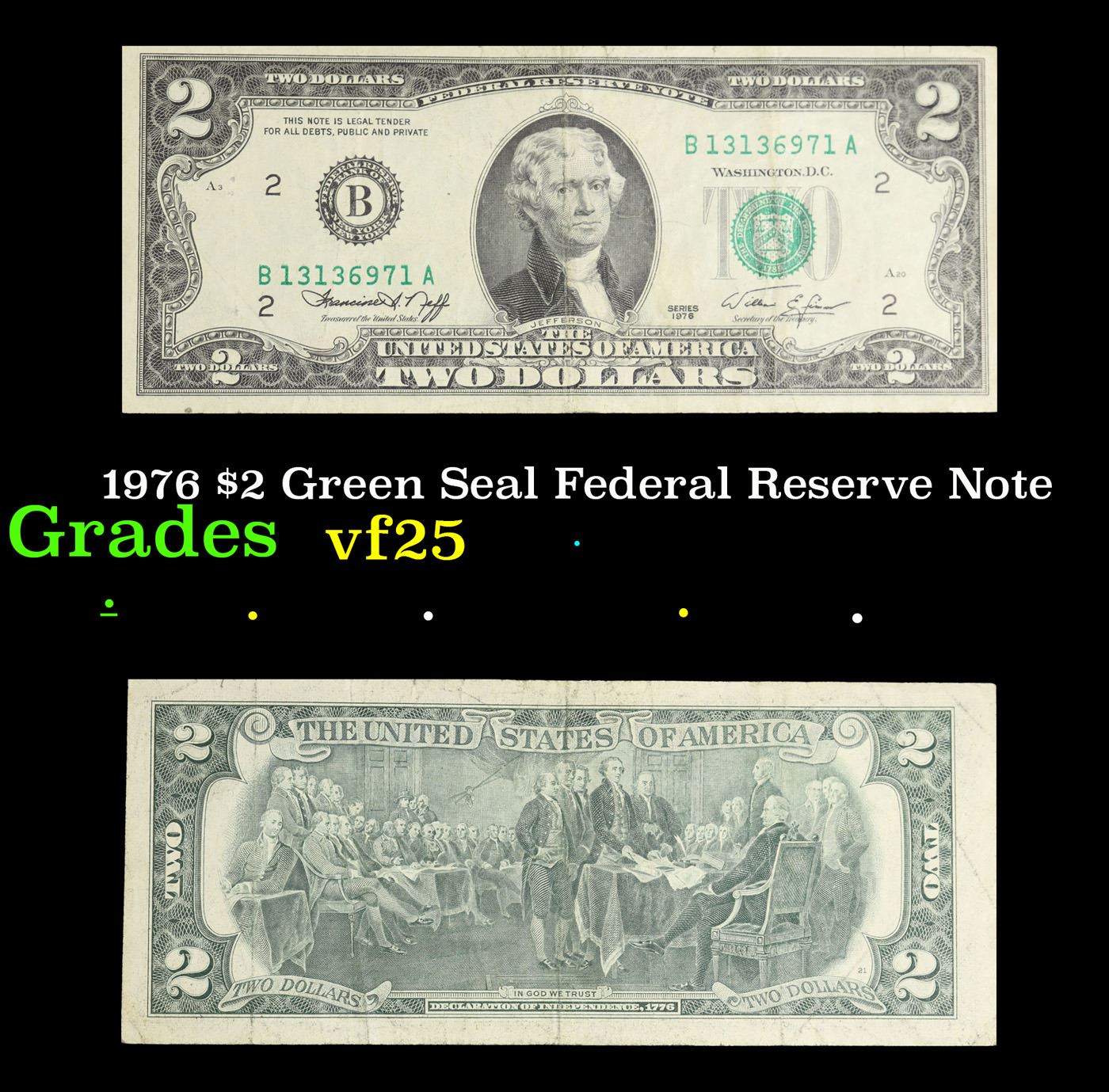 1976 $2 Green Seal Federal Reserve Note Grades vf+.