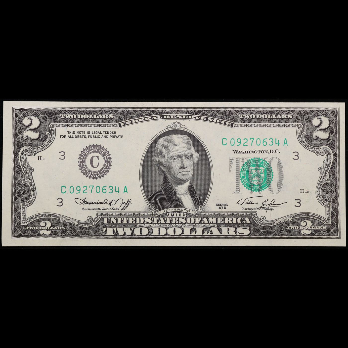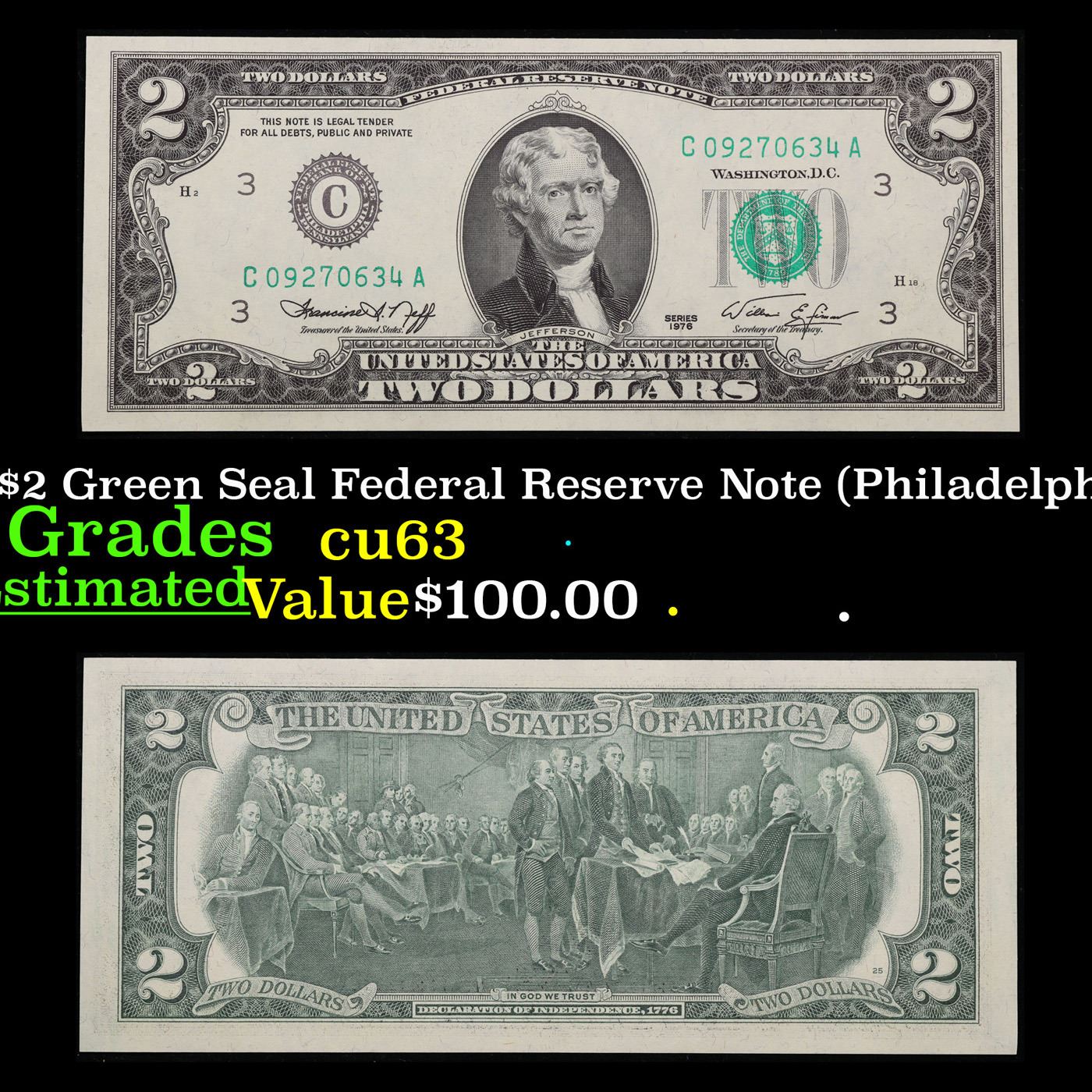 1976 $2 Green Seal Federal Reserve Note (Philadelphia, PA) Grades Select CU