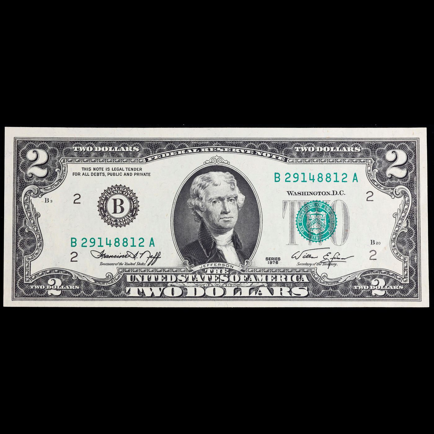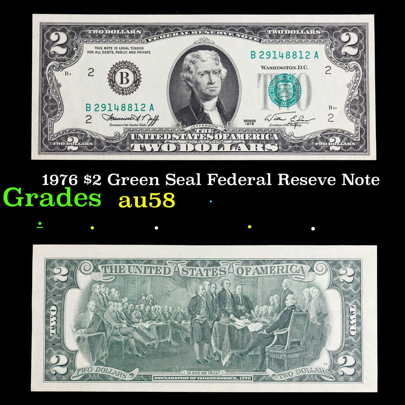 1976 $2 Green Seal Federal Reseve Note Grades Choice AU/BU Slider.