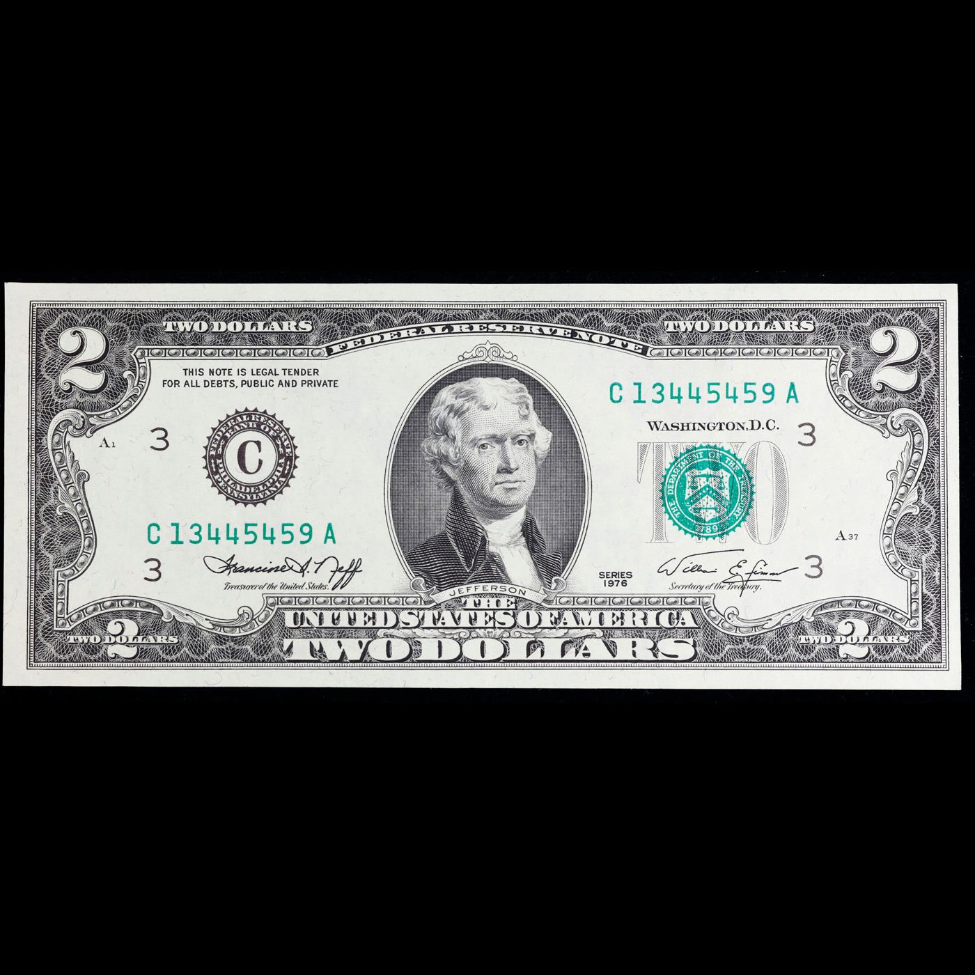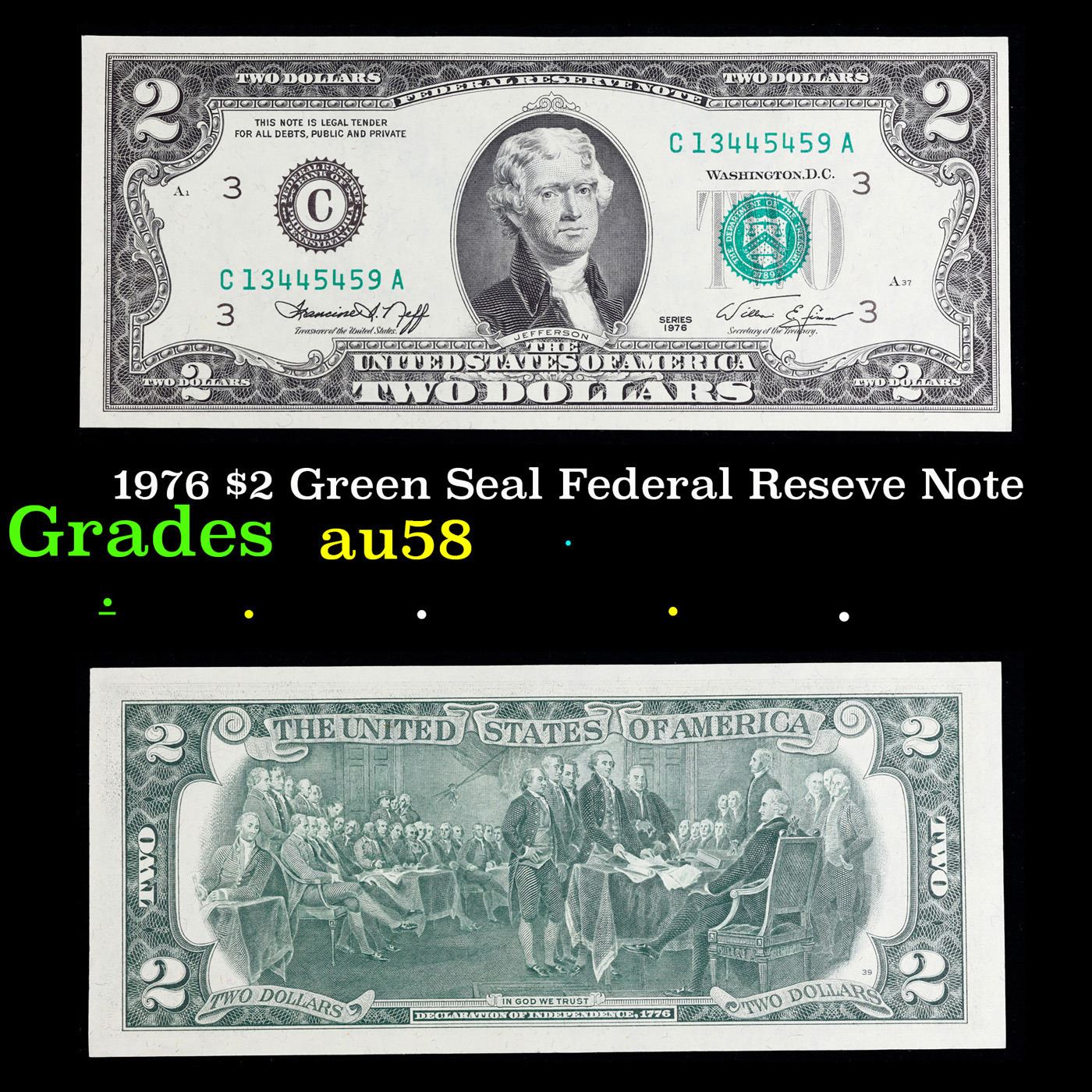 1976 $2 Green Seal Federal Reseve Note Grades Choice AU/BU Slider.
