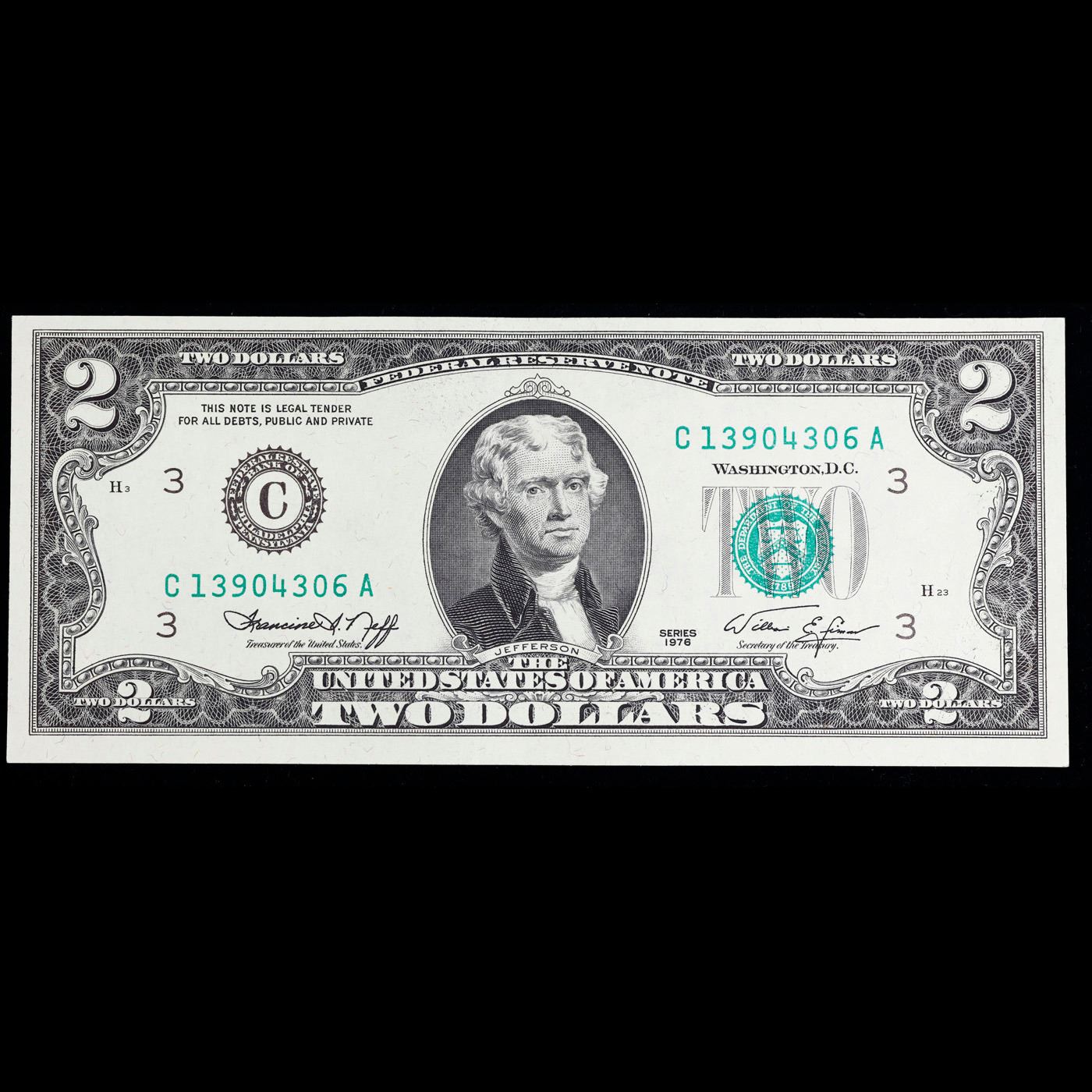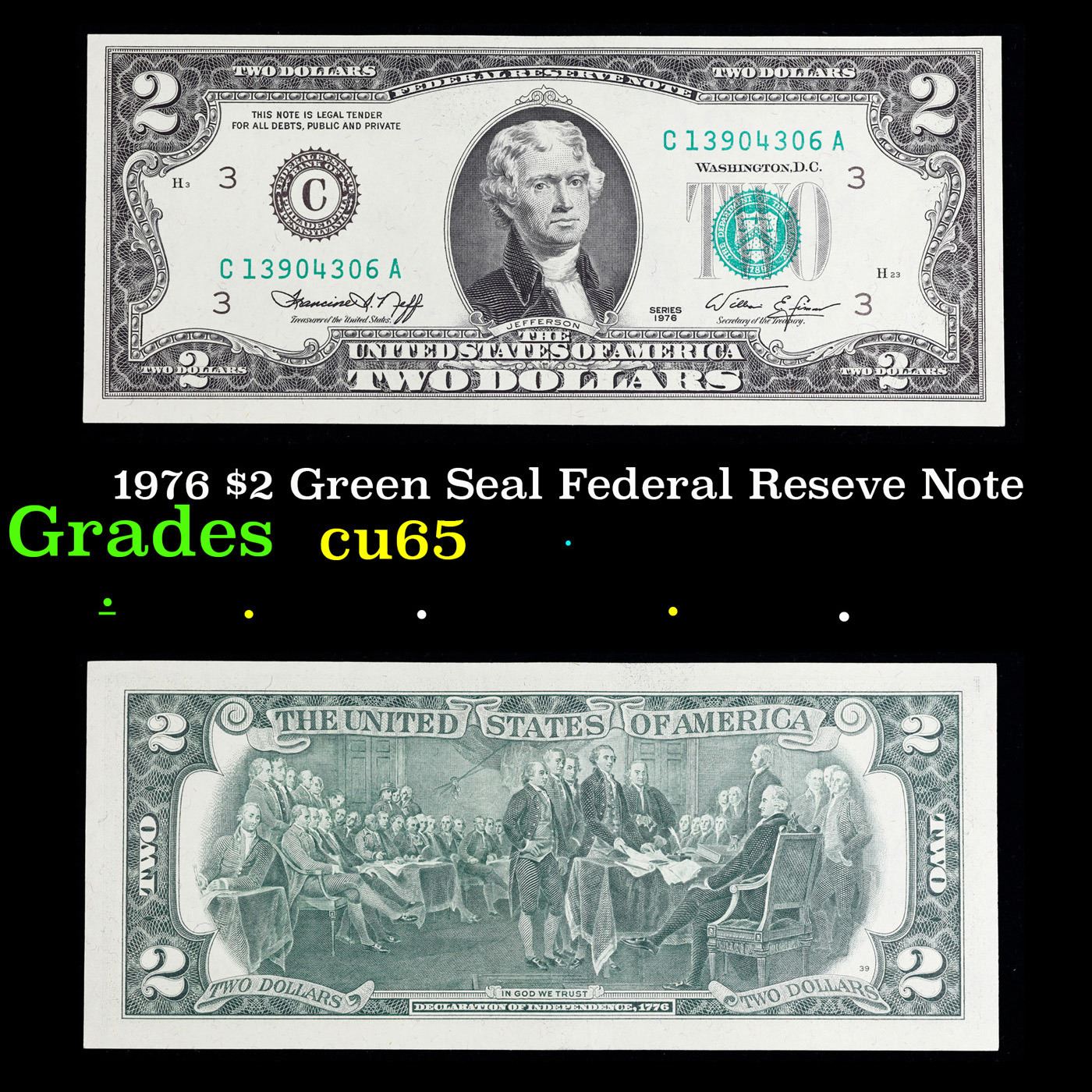 1976 $2 Green Seal Federal Reseve Note Grades Gem CU.