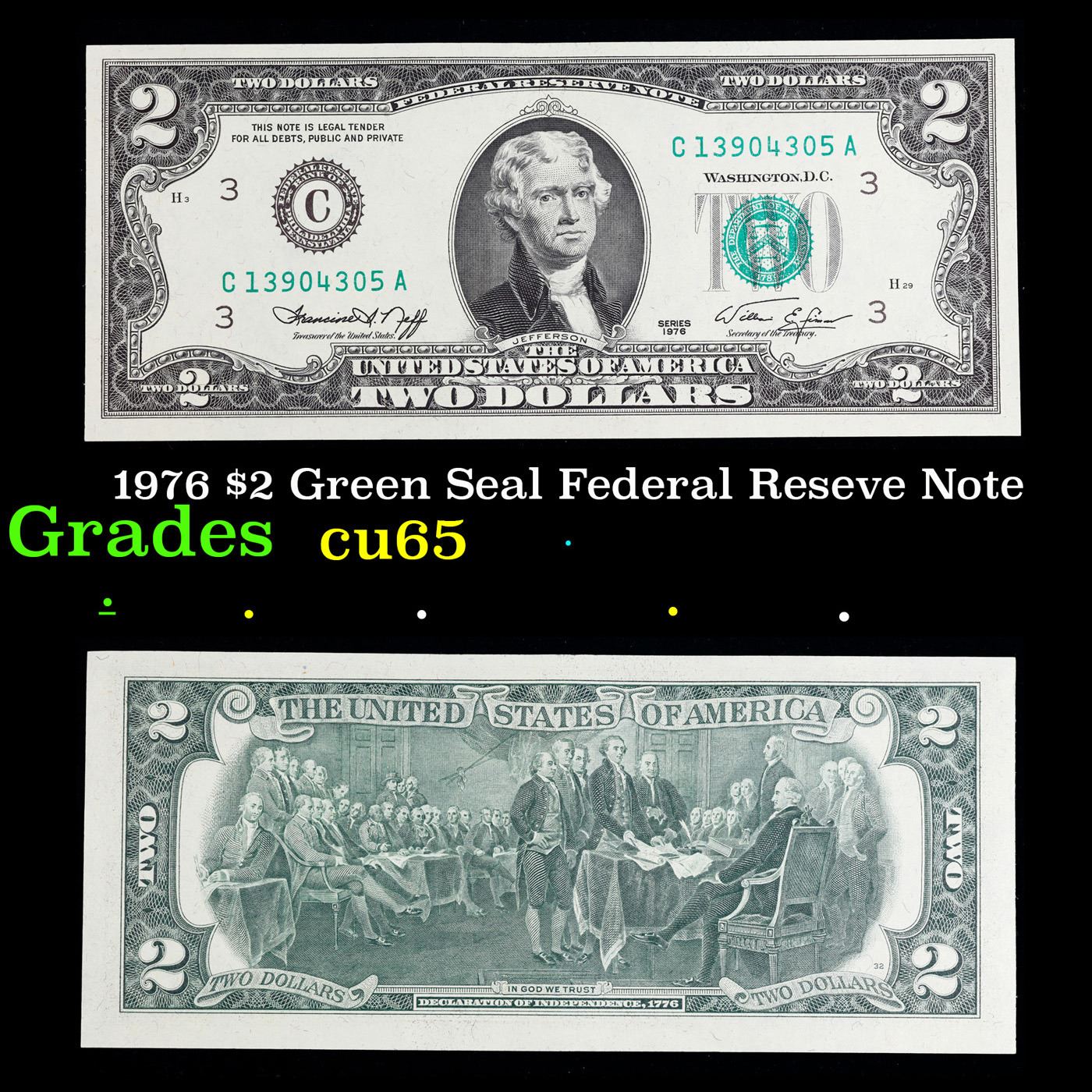 1976 $2 Green Seal Federal Reseve Note Grades Gem CU.