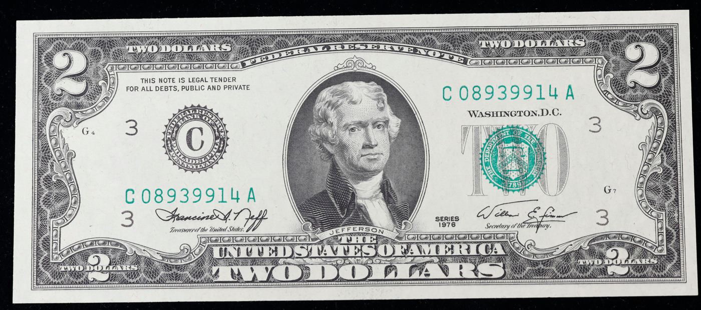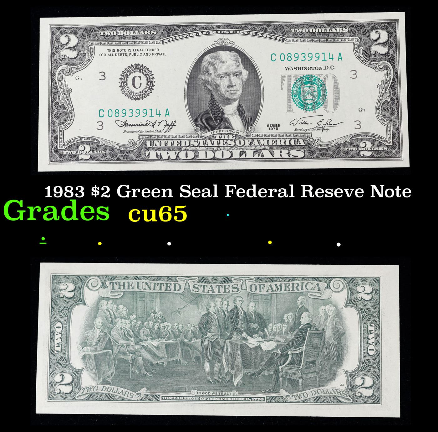 1976 $2 Green Seal Federal Reseve Note Grades Gem CU