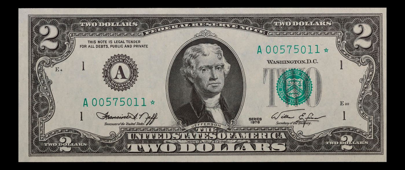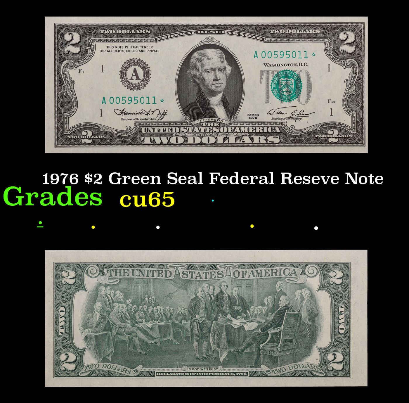 1976 $2 Green Seal Federal Reseve Note Grades Gem CU.