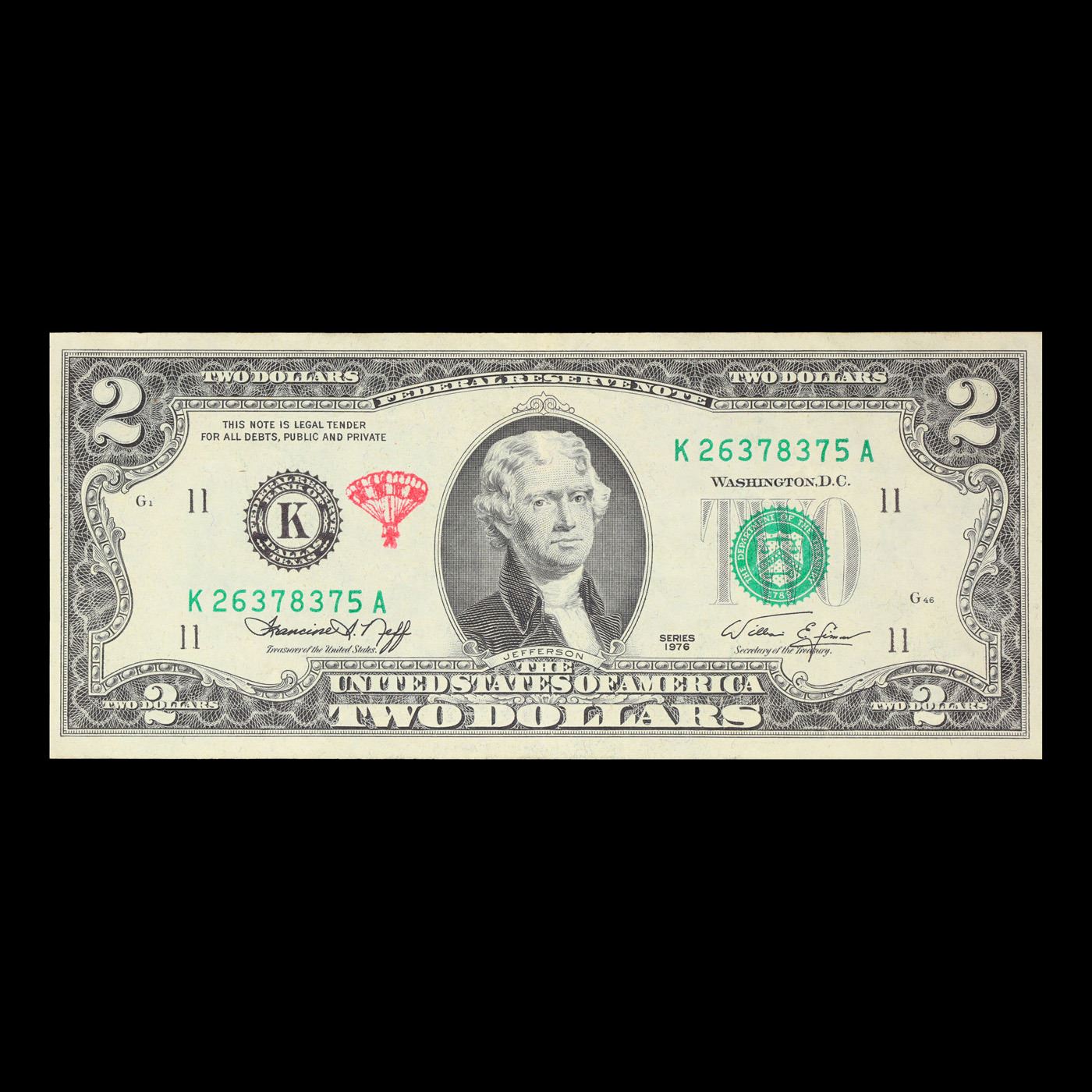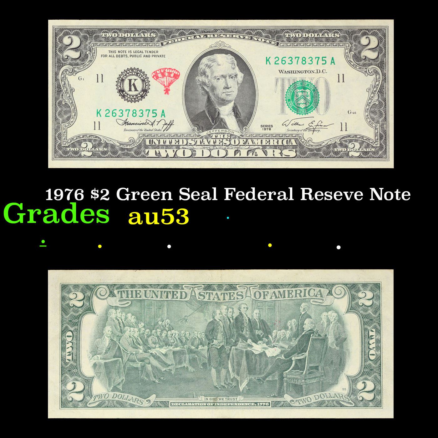 1976 $2 Green Seal Federal Reseve Note Grades Select AU.