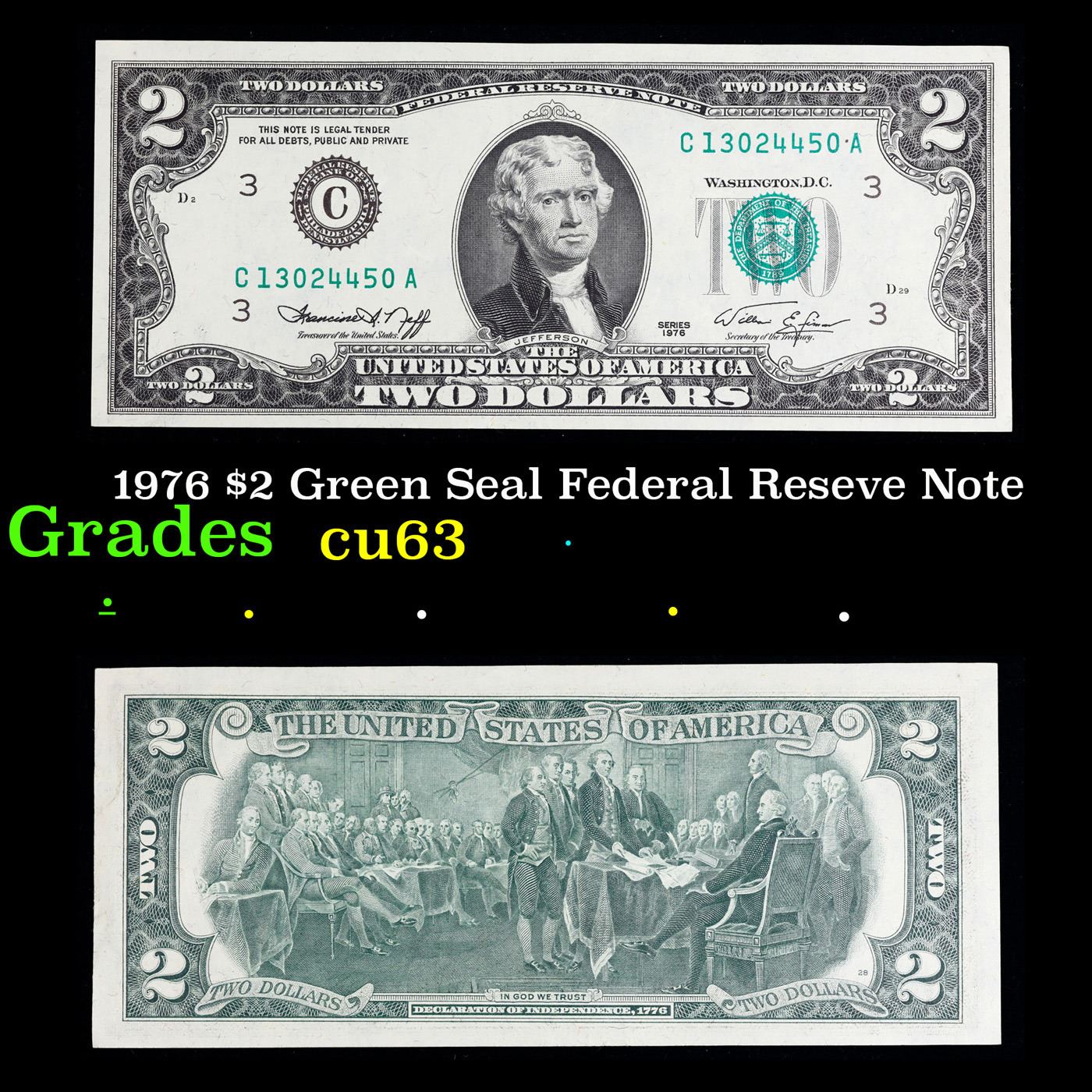 1976 $2 Green Seal Federal Reseve Note Grades Select CU.