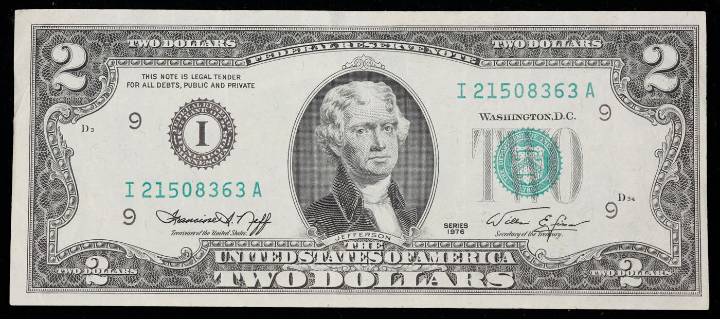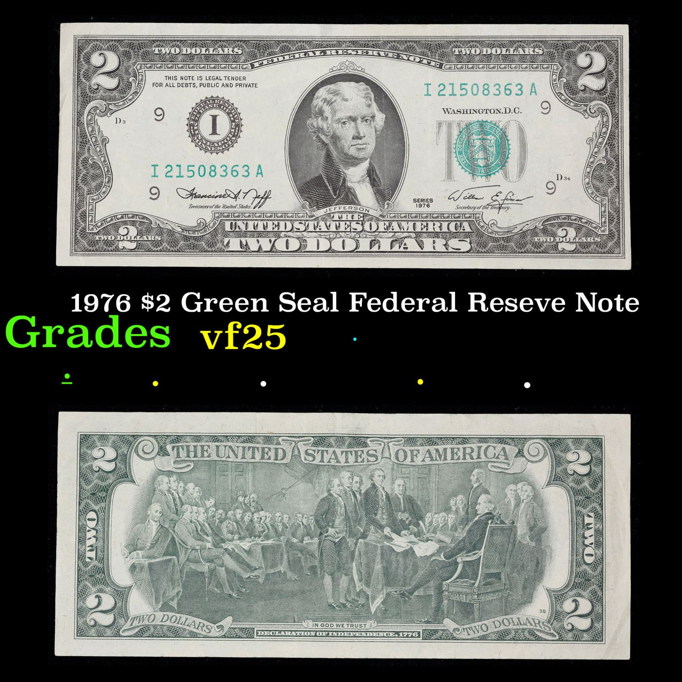 1976 $2 Green Seal Federal Reseve Note Grades vf+.