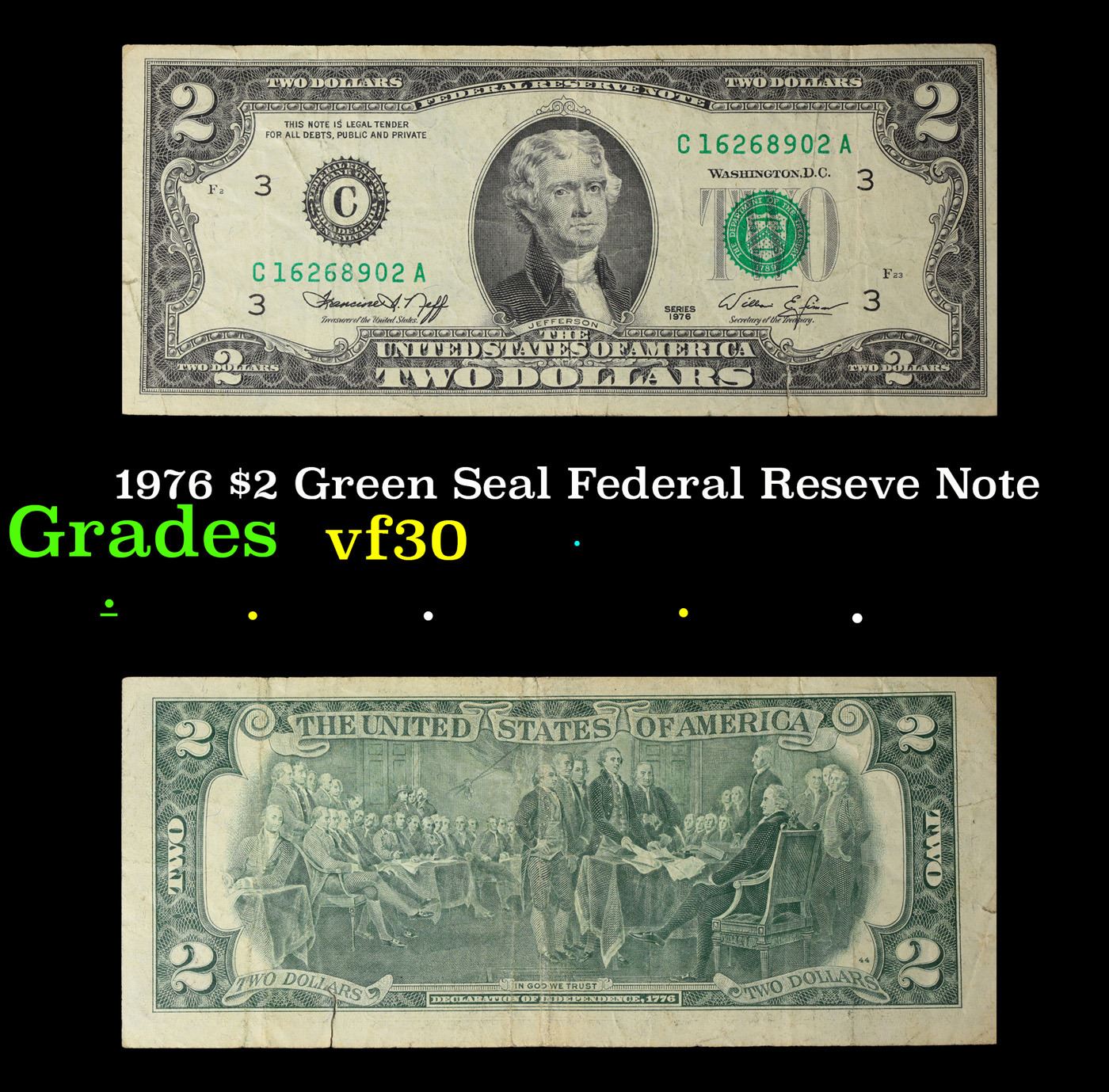 1976 $2 Green Seal Federal Reseve Note Grades vf++.
