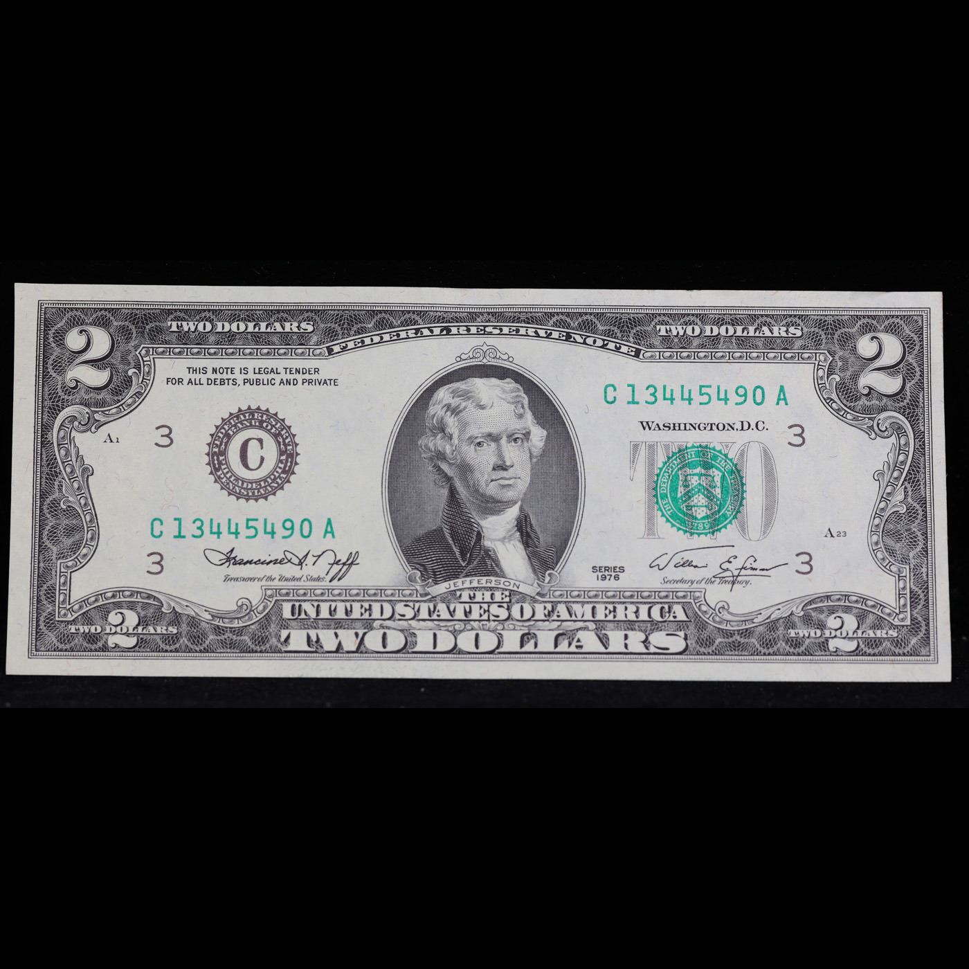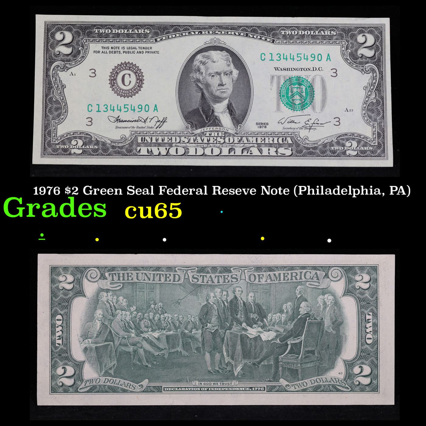 1976 $2 Green Seal Federal Reseve Note (Philadelphia, PA) Grades Gem CU.